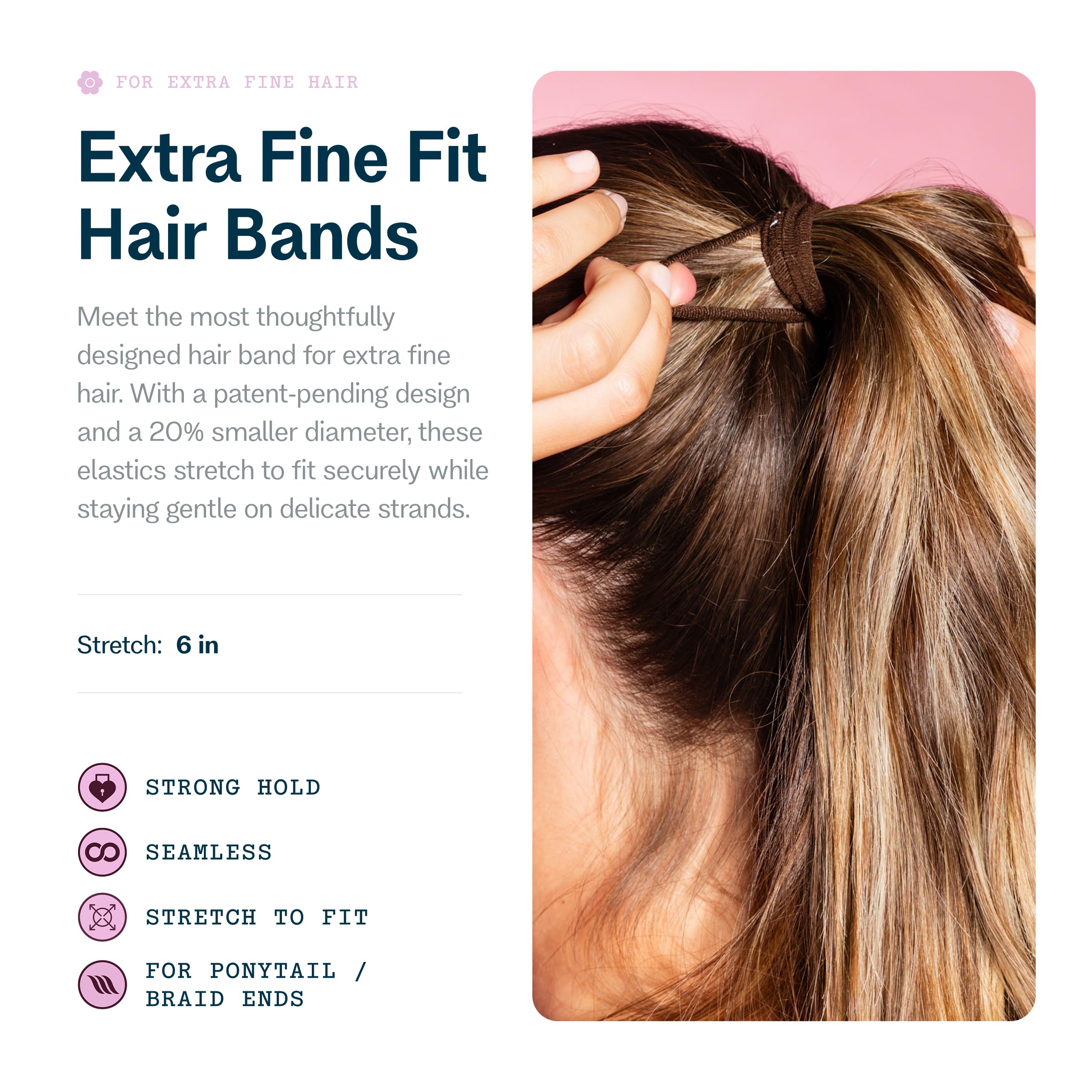 Advanced Design: Featuring patent-pending slim fit technology with 20% smaller diameter than standard fine hair bands, these hair bands are specially designed to provide gentle yet secure hold for extra-fine hair types