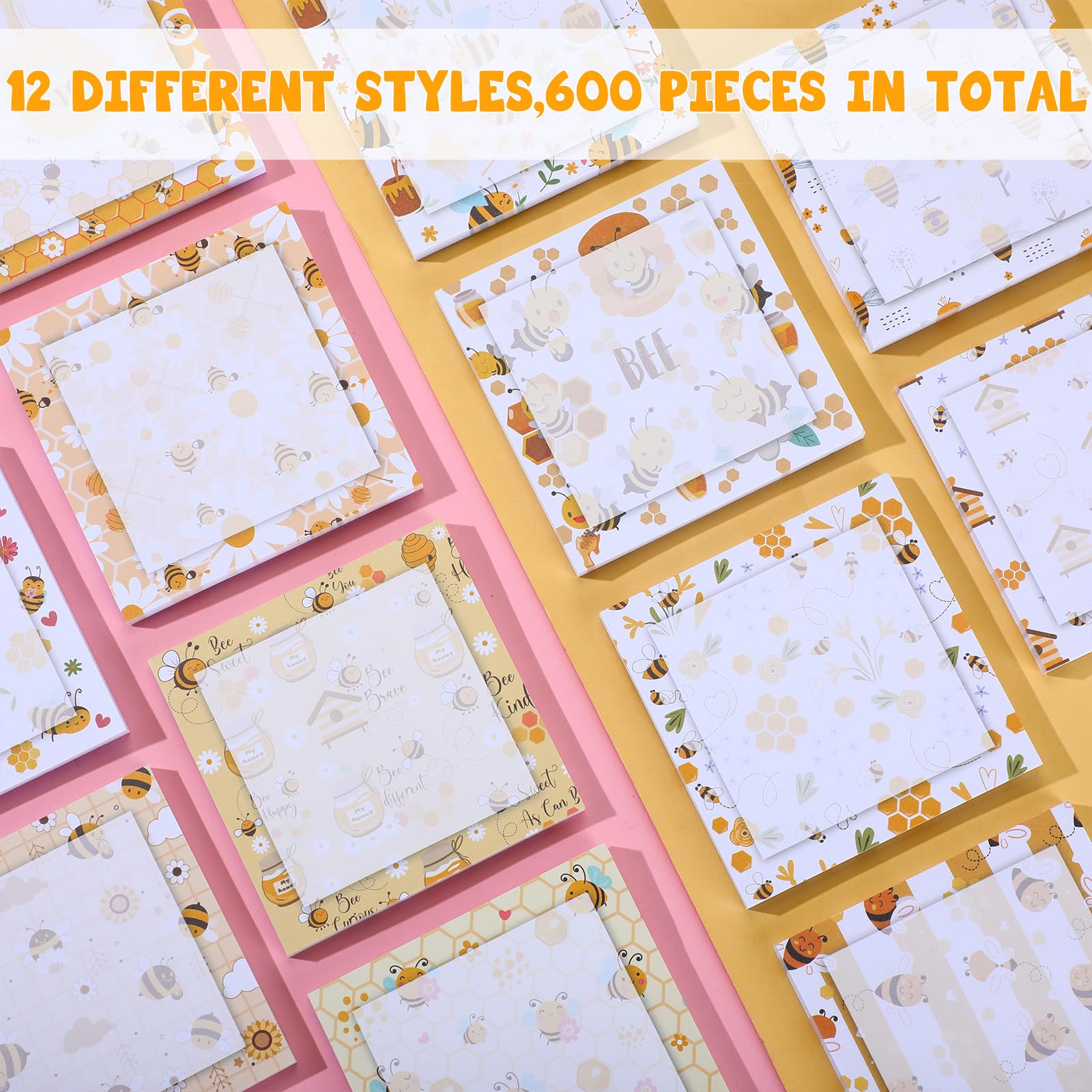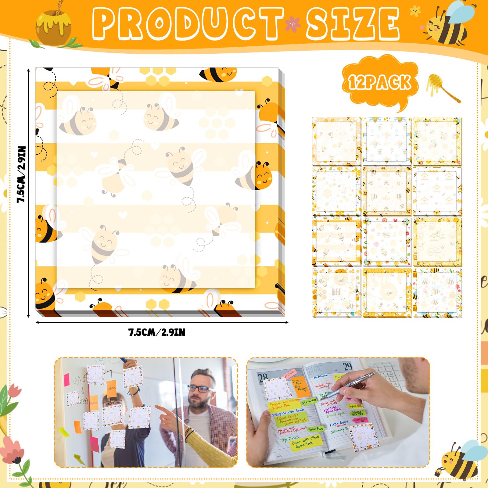 Rich in Quantity: this package provides you with 12 packs of to do list sticky notes of different bee styles, each pack has 50 sheets, a total of 600 sheets, sufficient quantity and diverse styles can meet your use and share needs; Each sheet measures 7.5 x 7.5 cm/ 2.9 x 2.9 inches, suitable for writing messages, memos, notes and more