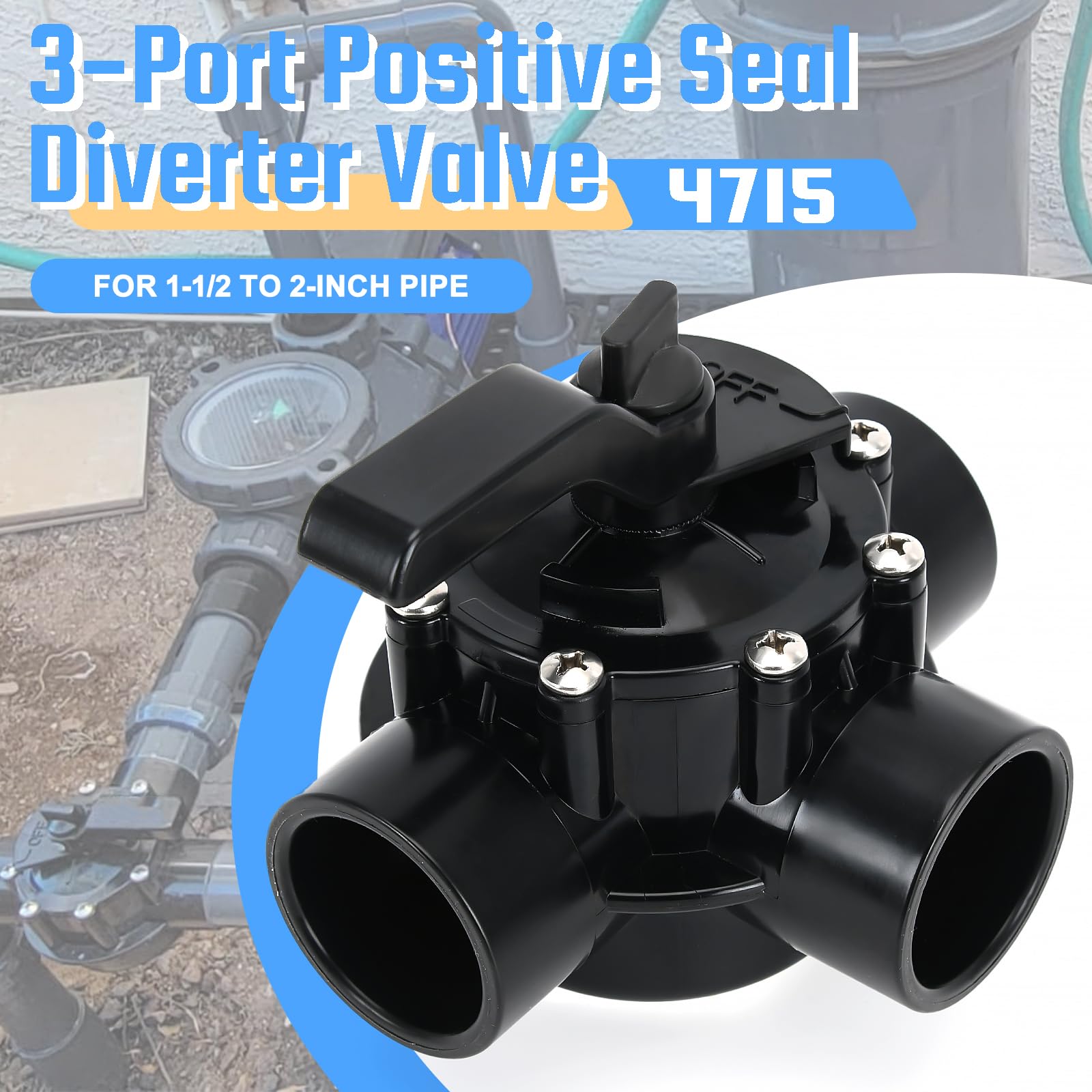【3 Way Valve 1-1/2 Inch】: Specifically engineered to replace Jandy 4715 postive seal valves, this model accommodates both 1.5-inch and 2-inch pipes, ensuring a secure and precise fit for a wide range of pool and spa systems