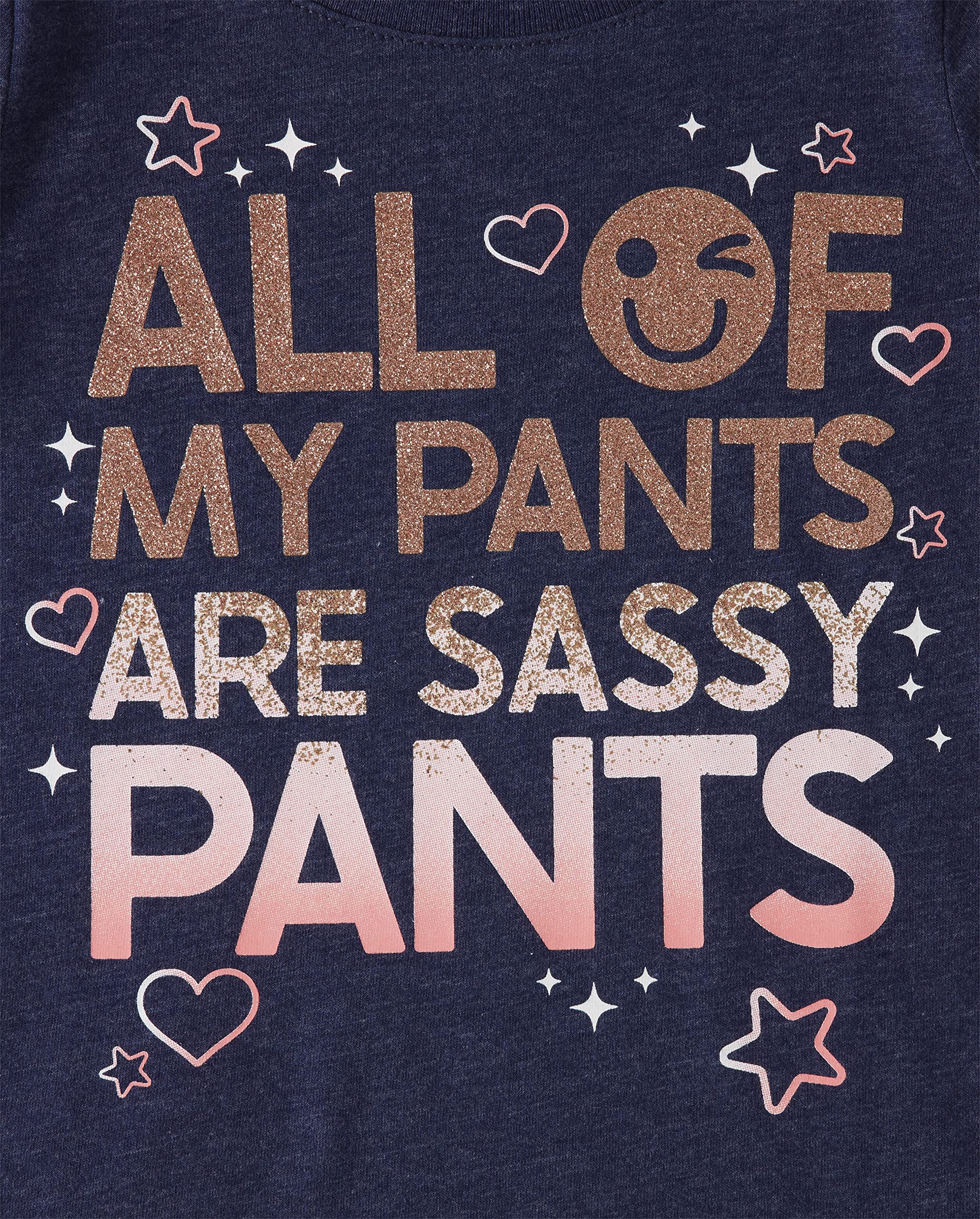 MULTIPACK — 3-pack of graphic tees: 1 style with 'A Little Bit Dramatic' and emojis graphic design at front; 1 style with 'All Of My Pants Are Sassy Pants' and winky face graphic design at front; 1 style with 'Family Favorite' and heart graphic design at front