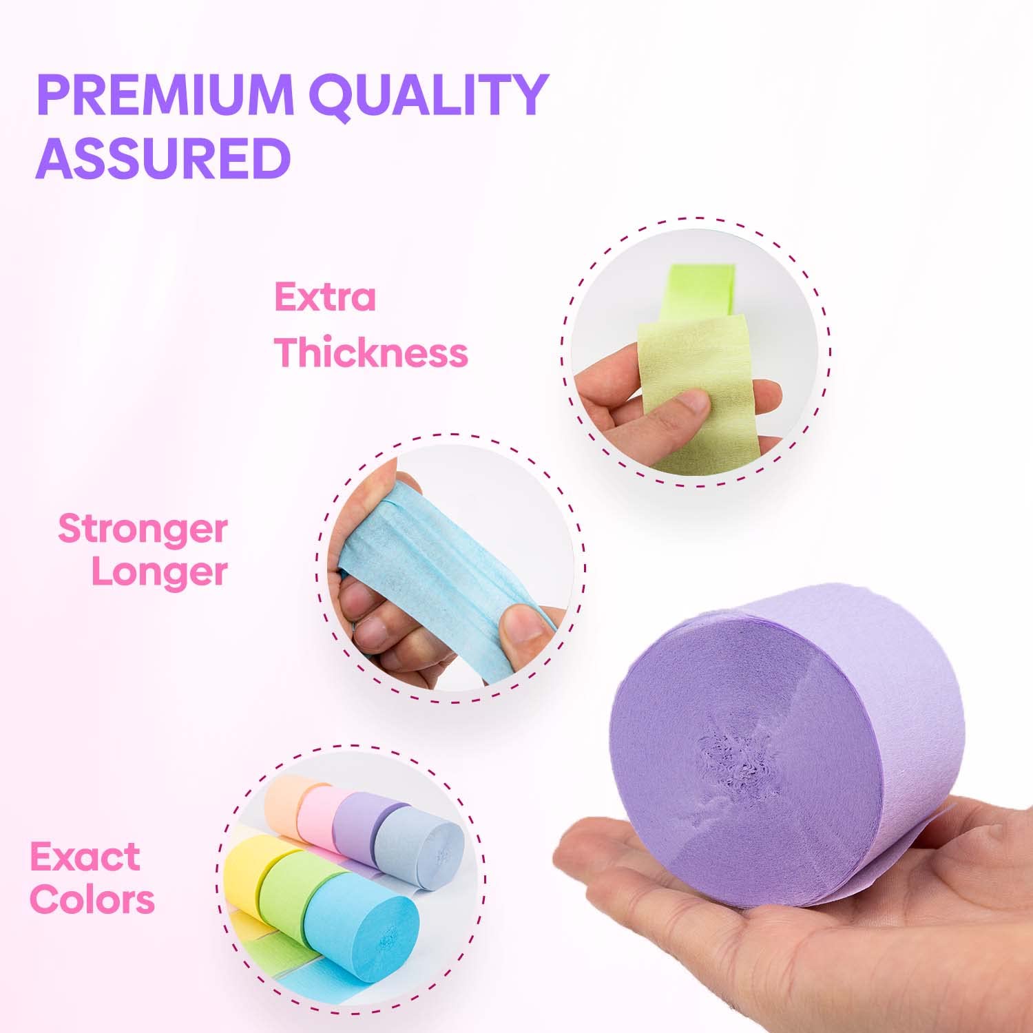 Superior Quality Material: Excellent pastel party supplies that you will experience the difference with our premium crepe paper that's economical and more durable than the standard. Great for pastel color birthday decorations