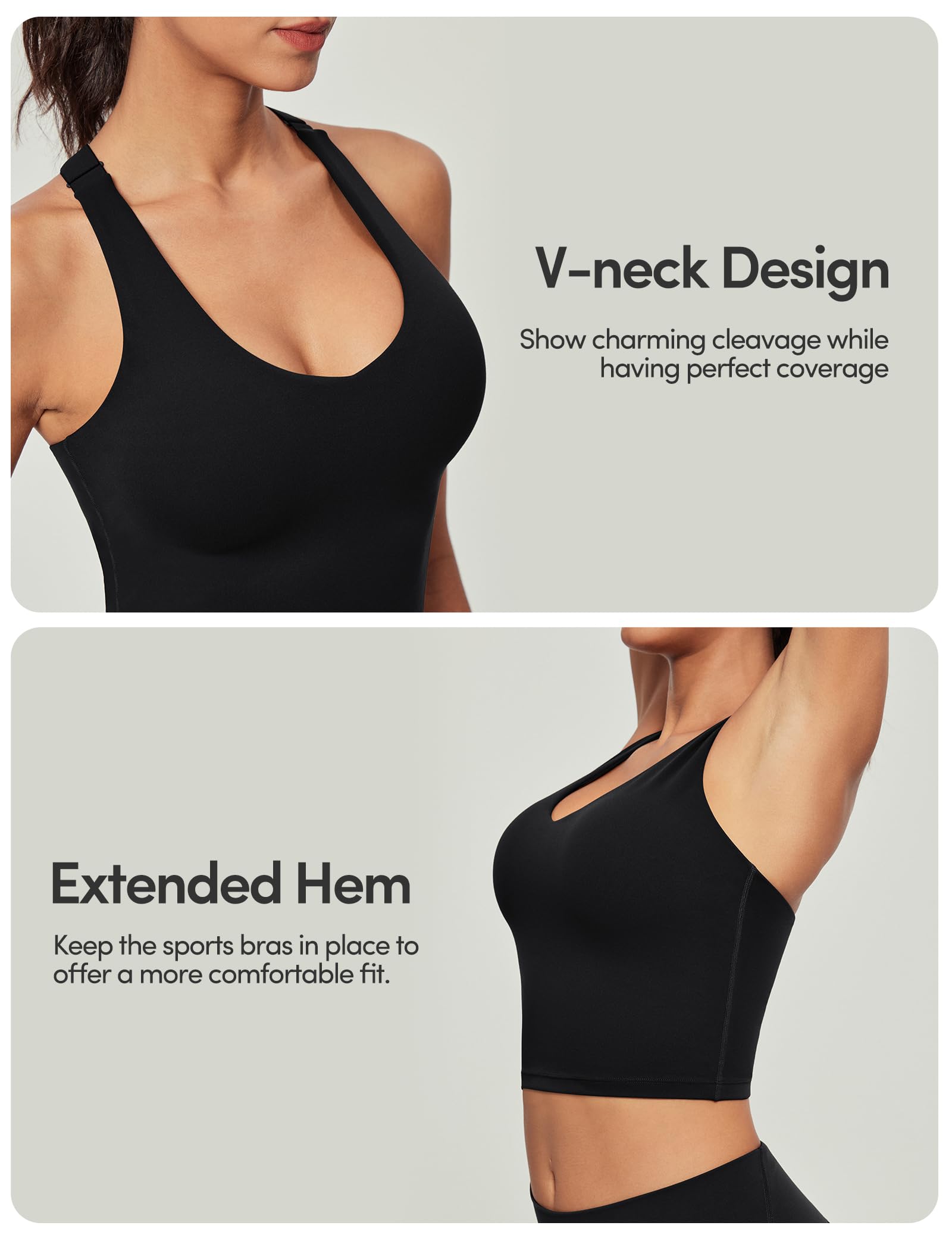 V-Neck Design, Exuding Elegance & Charm - Grace your yoga sessions with longline sports bra that boasts a V-neck design. It accentuates your curves while providing ample coverage, infusing confidence and style into every pose. The neckline is artfully crafted to hit just the right note, preserving the functionality essential for athletic pursuits while simultaneously exuding a sense of modern style.