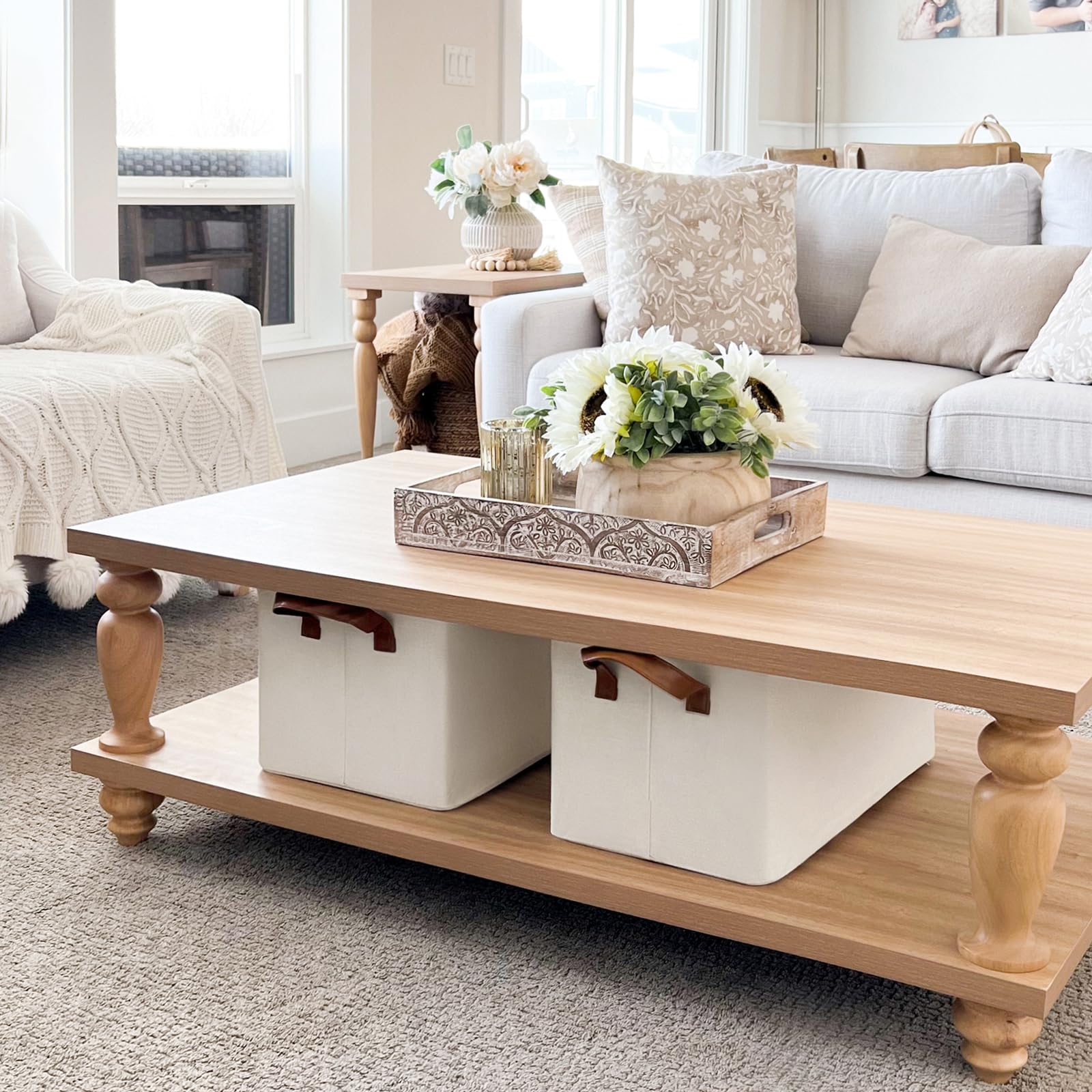Stylish and Decorative: With leather handles and a neutral color, these large storage bins add a touch of elegance while serving as functional storage solutions. They're an ideal choice for a nursery's shelves or under the crib for storing baby essentials and clothing