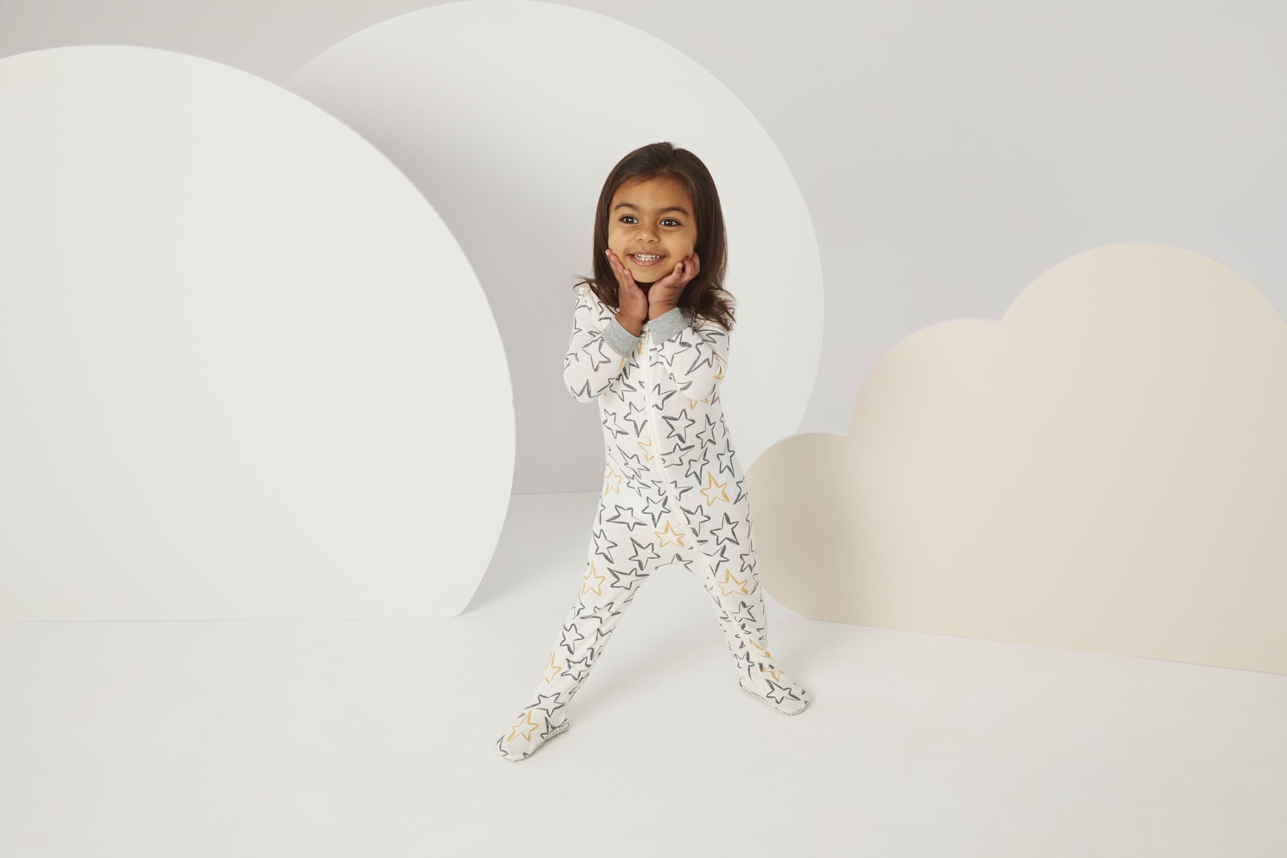 Description Designed by the baby experts at Huggies, this 3-pack of sleep coveralls are made of skin-healthy organic cotton rib knit fabric that feels soft and gentle on your child's precious skin. The full-zip closure makes late-night diaper changes a breeze, elasticized, footed bottoms keep tiny toes warm all night, and silicone grips give your toddler an extra boost when they are on the move. With three adorable prints to choose from, this 3-pack wraps your little one in comfort and cuteness!