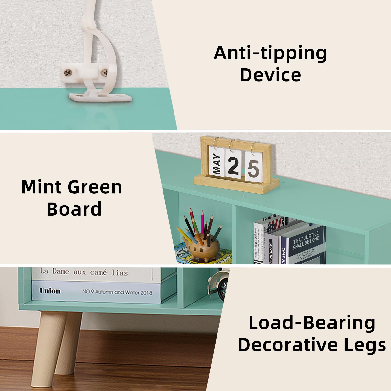 [Flexible Use] The cute large bookshelf can be used not only as an adult storage organizer, but also as a kids bookshelf and toy display cabinet. The fresh and natural mint green of the bookshelf can become a beautiful scenery of your children’s room, increasing the decoration while accompanying your children to develop good reading and classification of storage habits.
