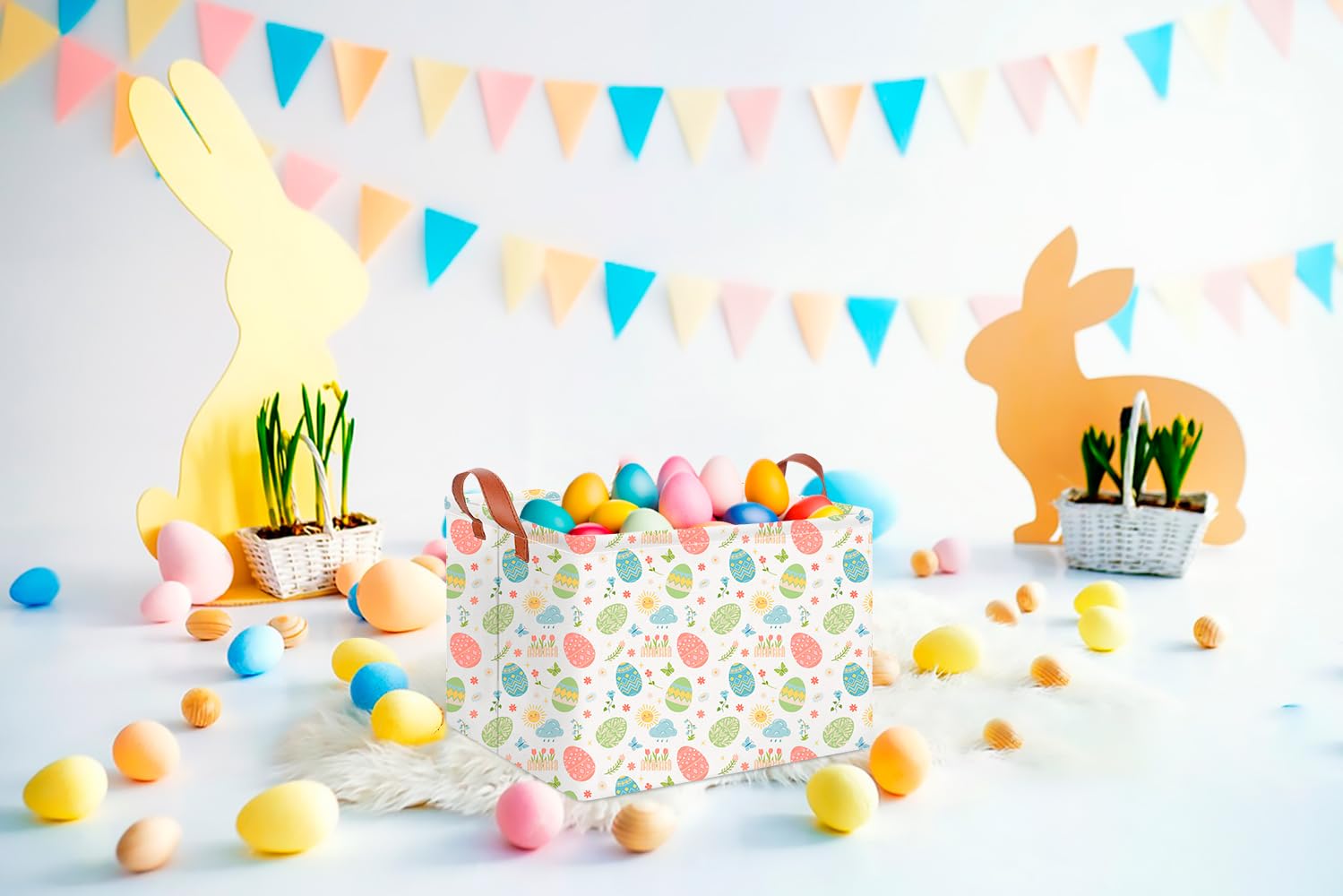 MATERIAL:The gift basket is made of linen & canvas fabric, waterproof PE coating inner, lightweight and durable.