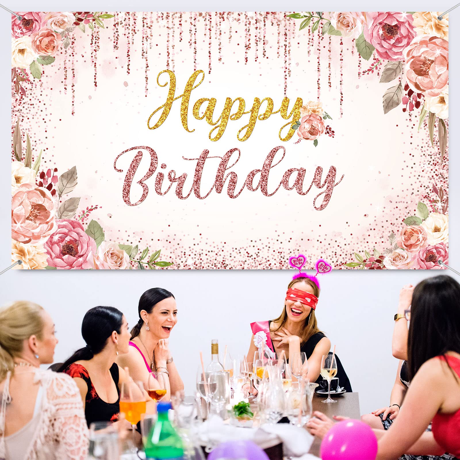 Add charm to your party: these gold and pink happy birthday backdrops adopt many patterns of flowers, which are full of romantic and sweet breathing, which can turn your party into a sea of flowers instantly and leave an unforgettable memory in your guests' mind