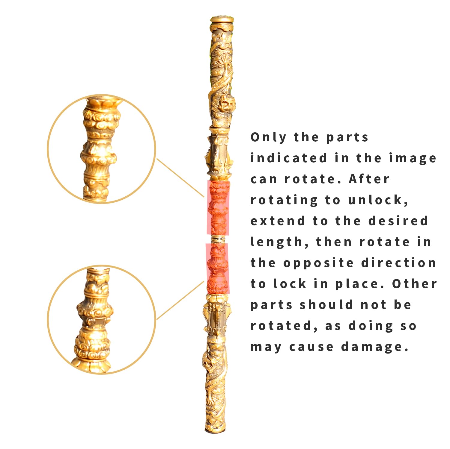 Materials: The retractable dragon bone is made of aluminum alloy, with a TPR head that mimics a copper-like texture. It is durable, with a bronze color that doesn't fade, and has good wear resistance and detailed three-dimensional carving. Its perfect balance and weight distribution provide stability during use