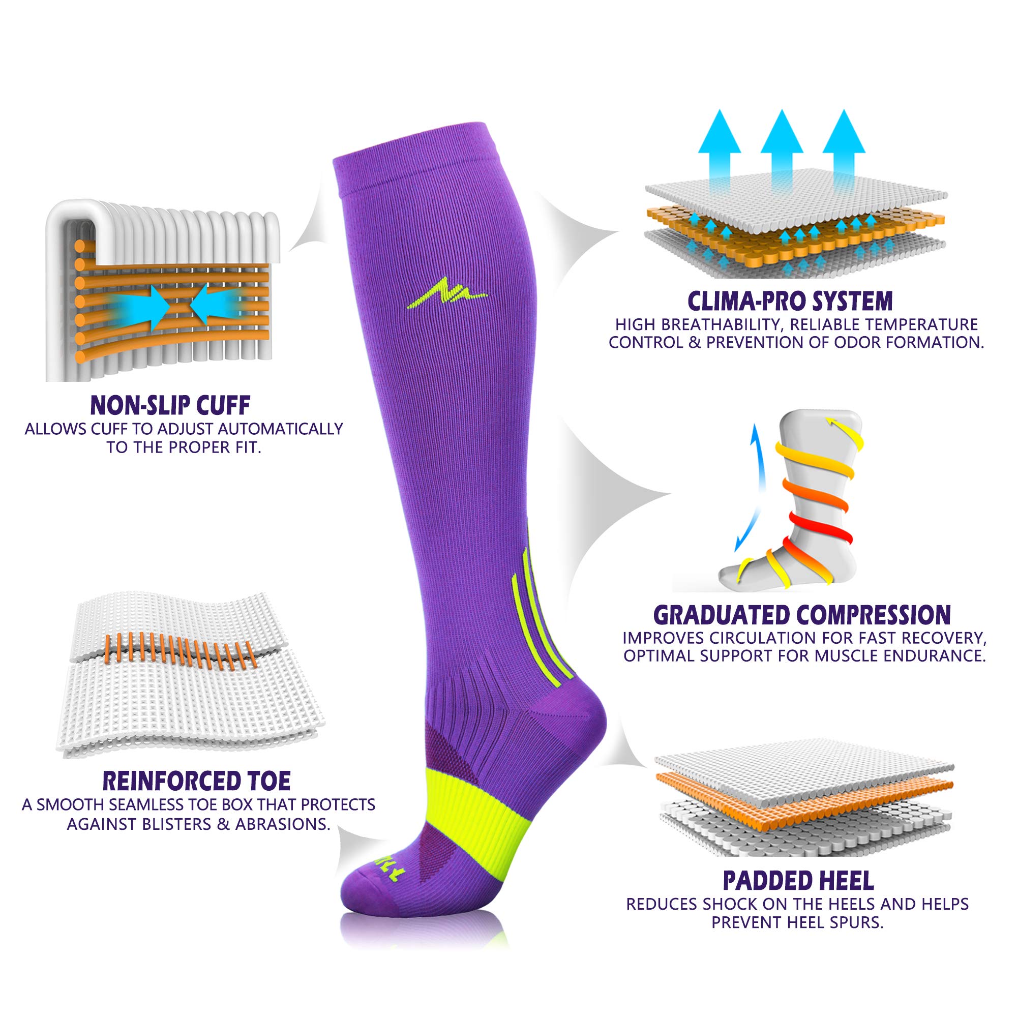 【IDEAL COMPRESSION SOCKS FOR ALL OCCASIONS】Our compression socks cater to a diverse range of needs from running nursing and traveling to sports like volleyball and basketball They also provide support for medical professionals pregnant women and individuals seeking comfort during travel or maternity With high-performance features our socks offer support and relief for both men and women across various occasions