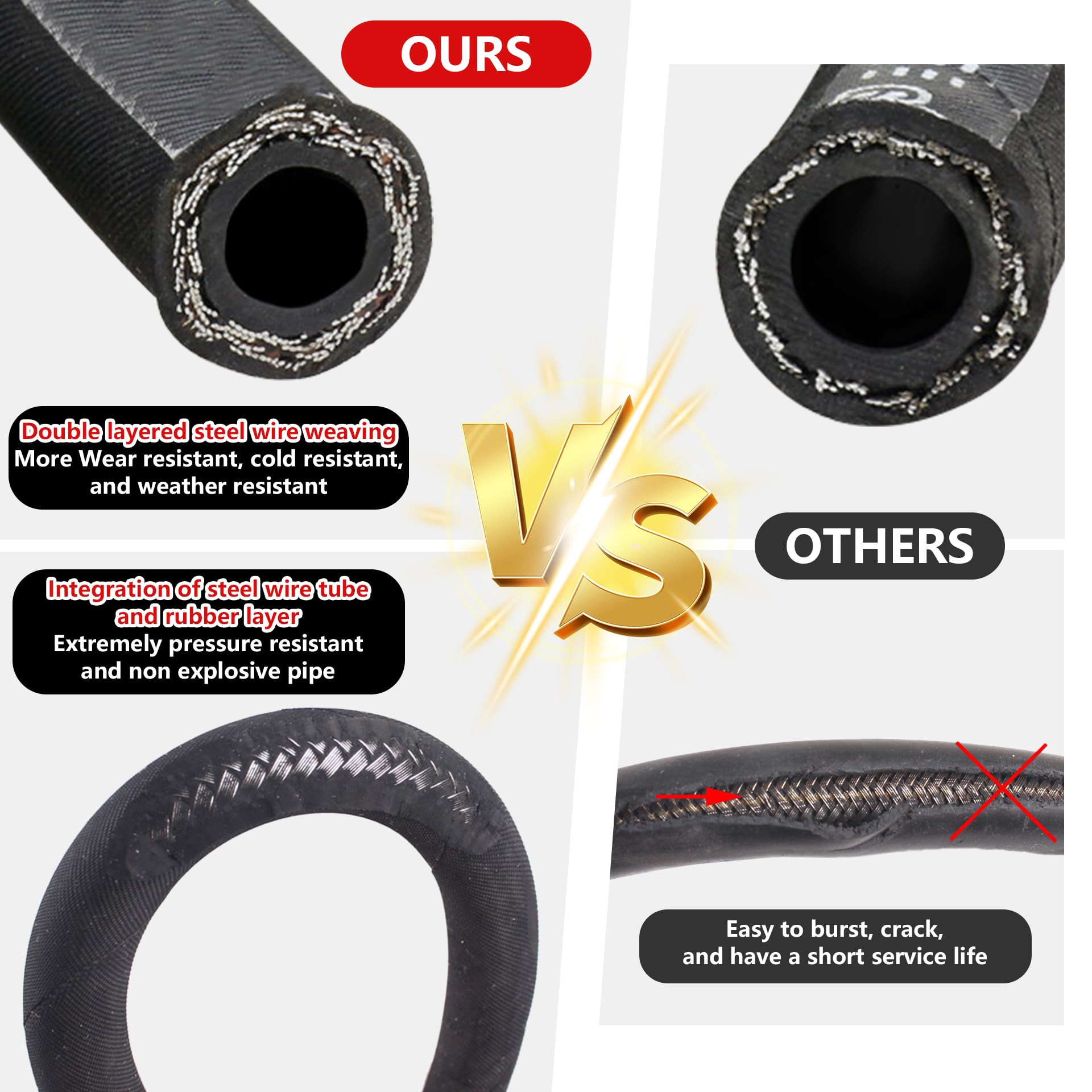 3.【Double-layer Wire Braided Design】: The Double-layer wire braided design adds extra strength and durability to our pressure washer hose, More wear-resistant, compressive and corrosion-resistant ,making it perfect for commercial and industrial applications.