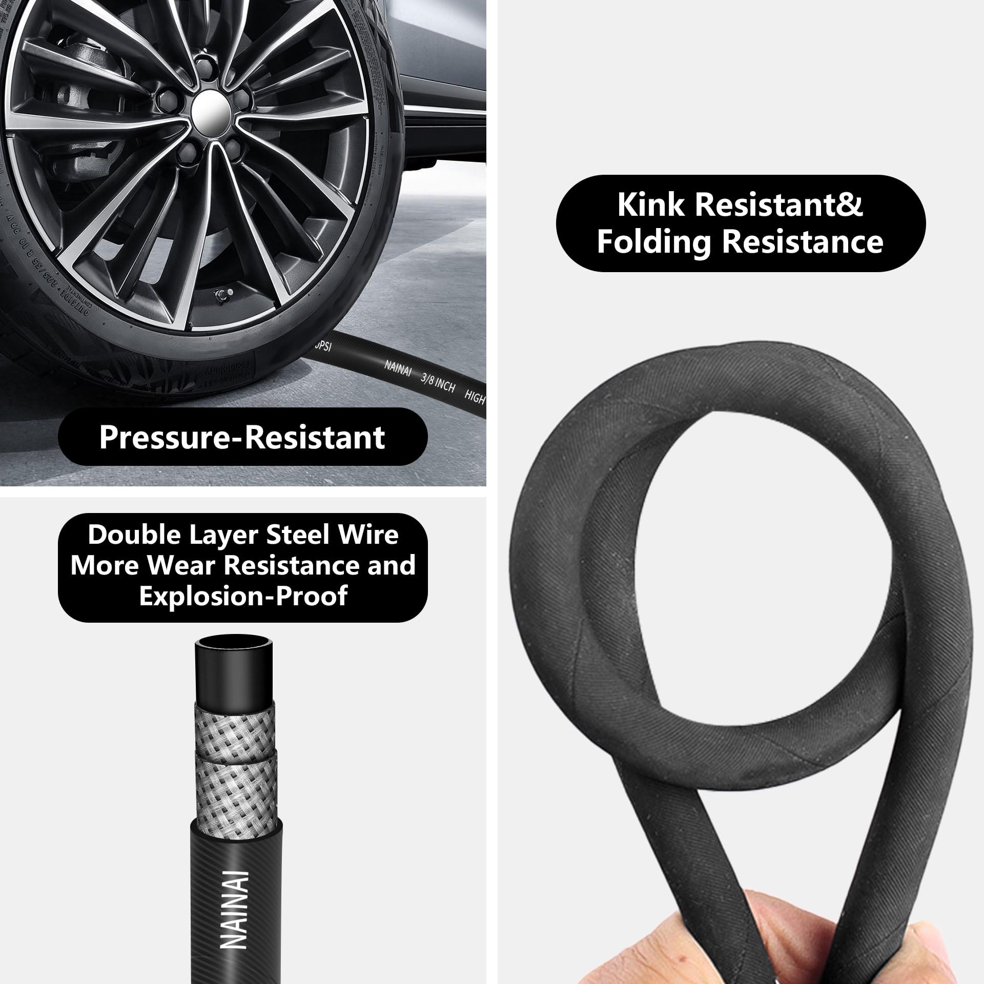 1.【Super Flexible&Kink Resistant Pressure Washer Hose】 Crafted from high-grade, robust, and abrasion-resistant material, NaiNai pressure washer hose is kink-resistant and remarkably pliant. It is lightweight, simple to maneuver, and designed to resist kinks and markings.