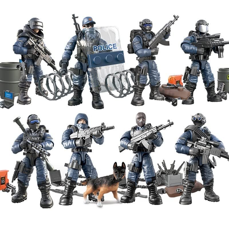 It is the best choice if you want to give a gift to a kid. It is suitable for children over 6 years old, or anyone who have a favorite military hobby. Quality time: With children or friends, building is a wonderful activity. This building block toy will promote your child's hand-eye coordination, divergent thinking, problem-solving skills, and stimulate creativity and brain development. Help children learn the spirit of collaboration and teamwork. Specifications: Model: Light SWAT Team Action Figure Colour: Blue Figures Size: 2*2.2 inches. Material: ABS, rubber. Warm Notice Since the building blocks toys set contains small parts, please be sure to follow the age guidelines, and supervise your children for a safe playtime. Please sort all parts according to the manual before assembling the model. If there are missing parts, please mark in the manual and click 'Ask question window'. We will send the parts as soon as possible.