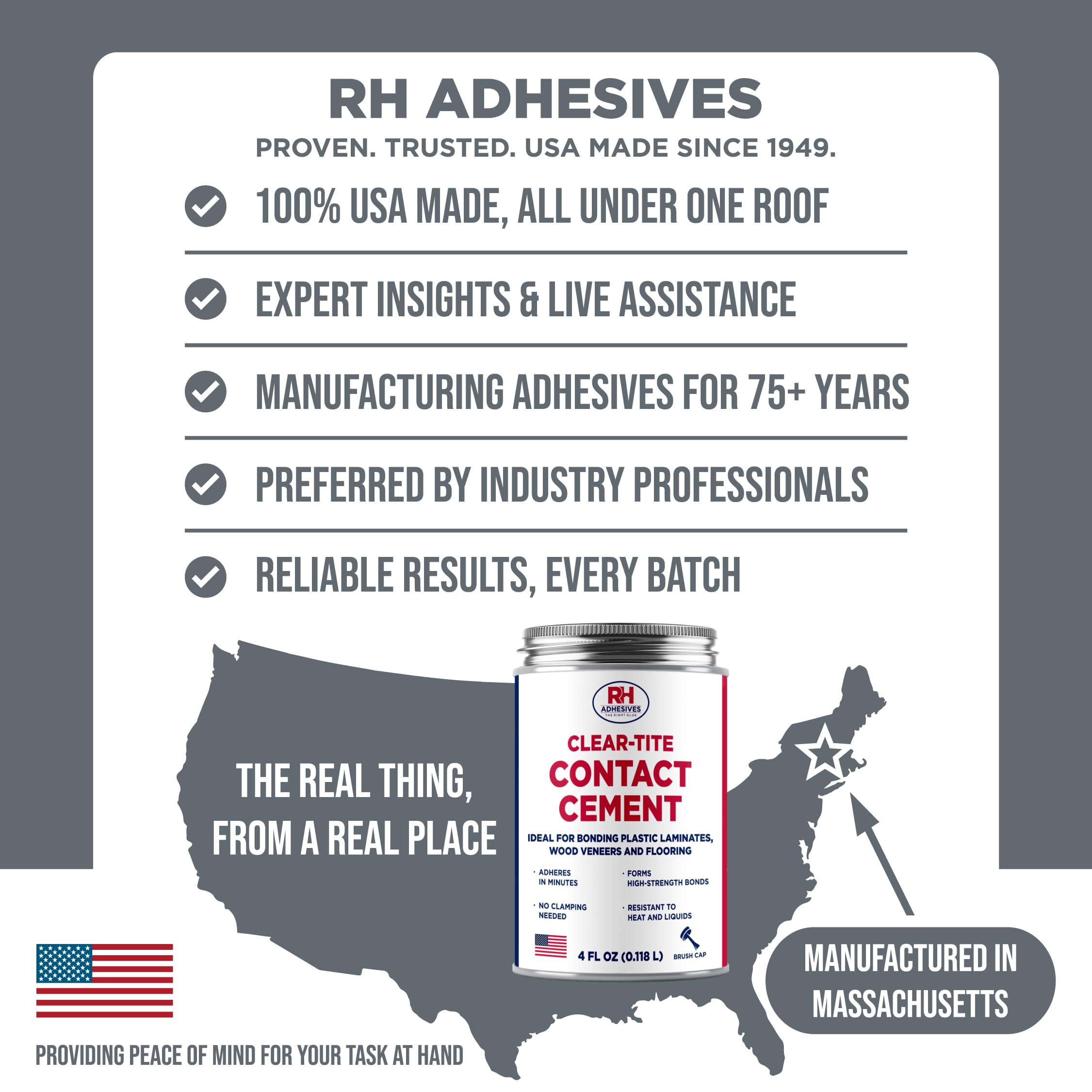 High Temperature Adhesive - We've designed the Clear-Tite Contact Cement formula to maintain its bond at extremely high temperatures up to 250 degrees Fahrenheit, creating a long lasting bond without sacrificing performance strength