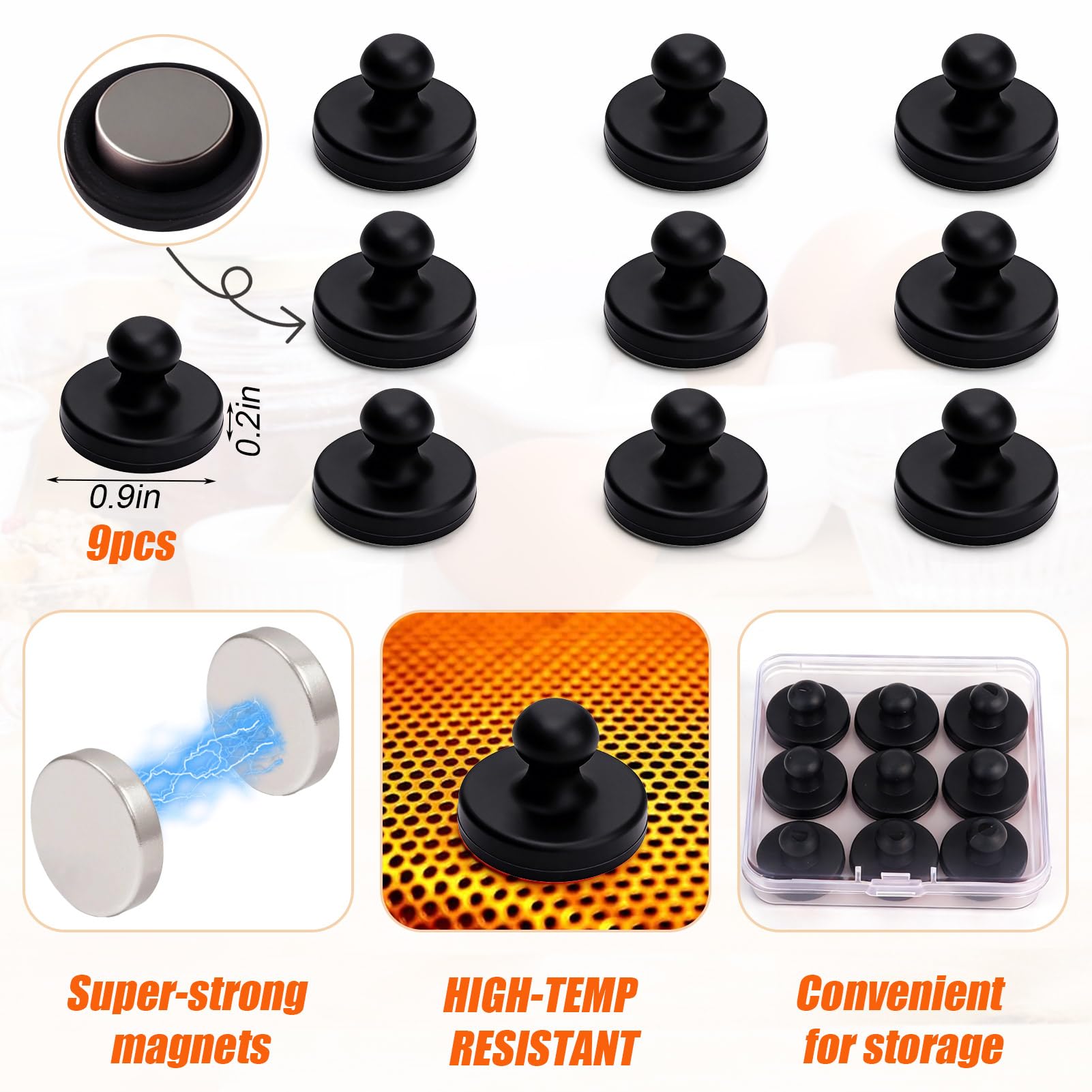 【Food contact grade heat-resistant material】 These air fryer accessories magnets are made of high-quality silicone material that meets food contact standards, with a heat resistance of up to 464 ° F (240 ° C), and will not deform or melt at high temperatures. Suitable for direct contact with food, keep clean and odorless even after repeated use.