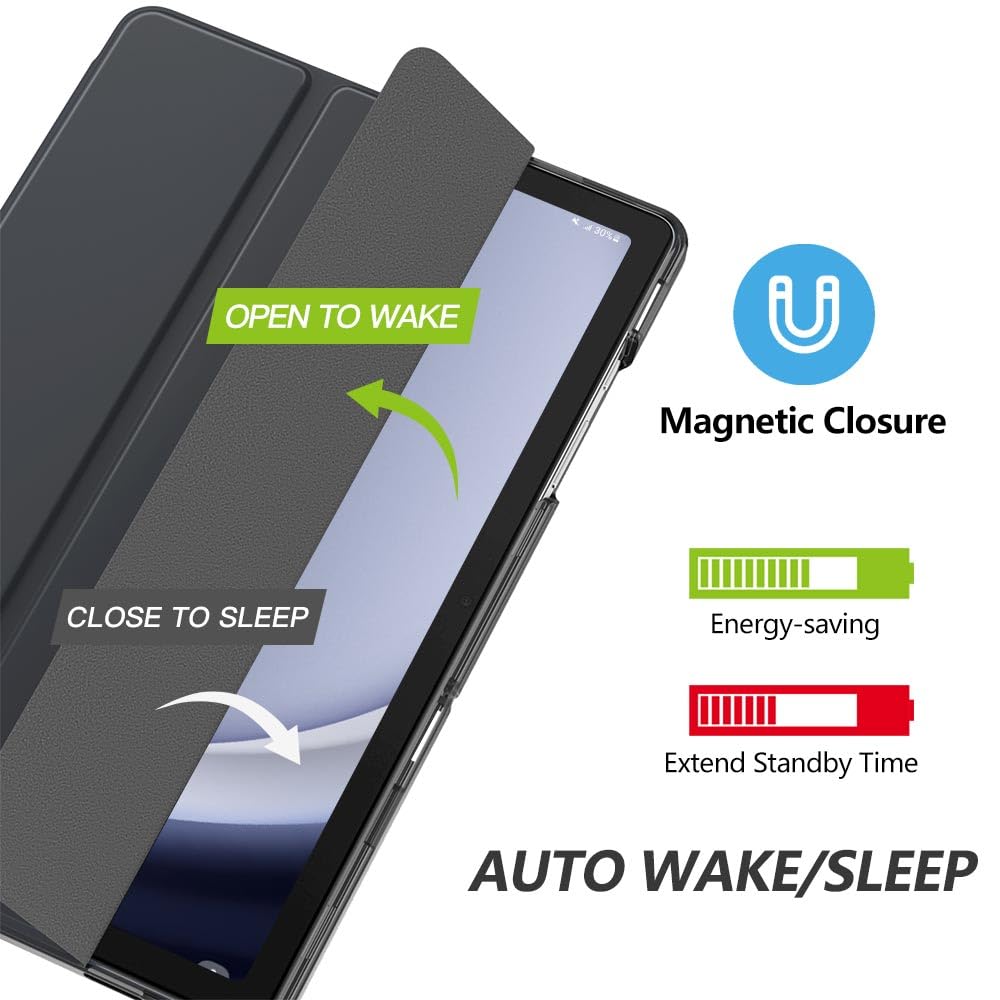 Auto Wake/Sleep: Built-in magnetic strip, automatically wakes or puts your tablet to sleep when the lid is opened and closed. this Tab A9 Plus Case Protects and extends battery life
