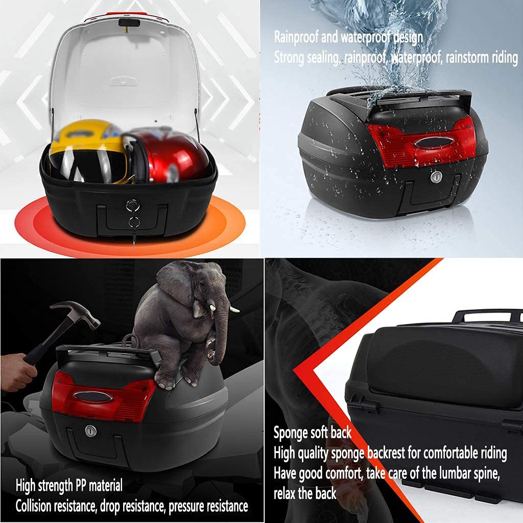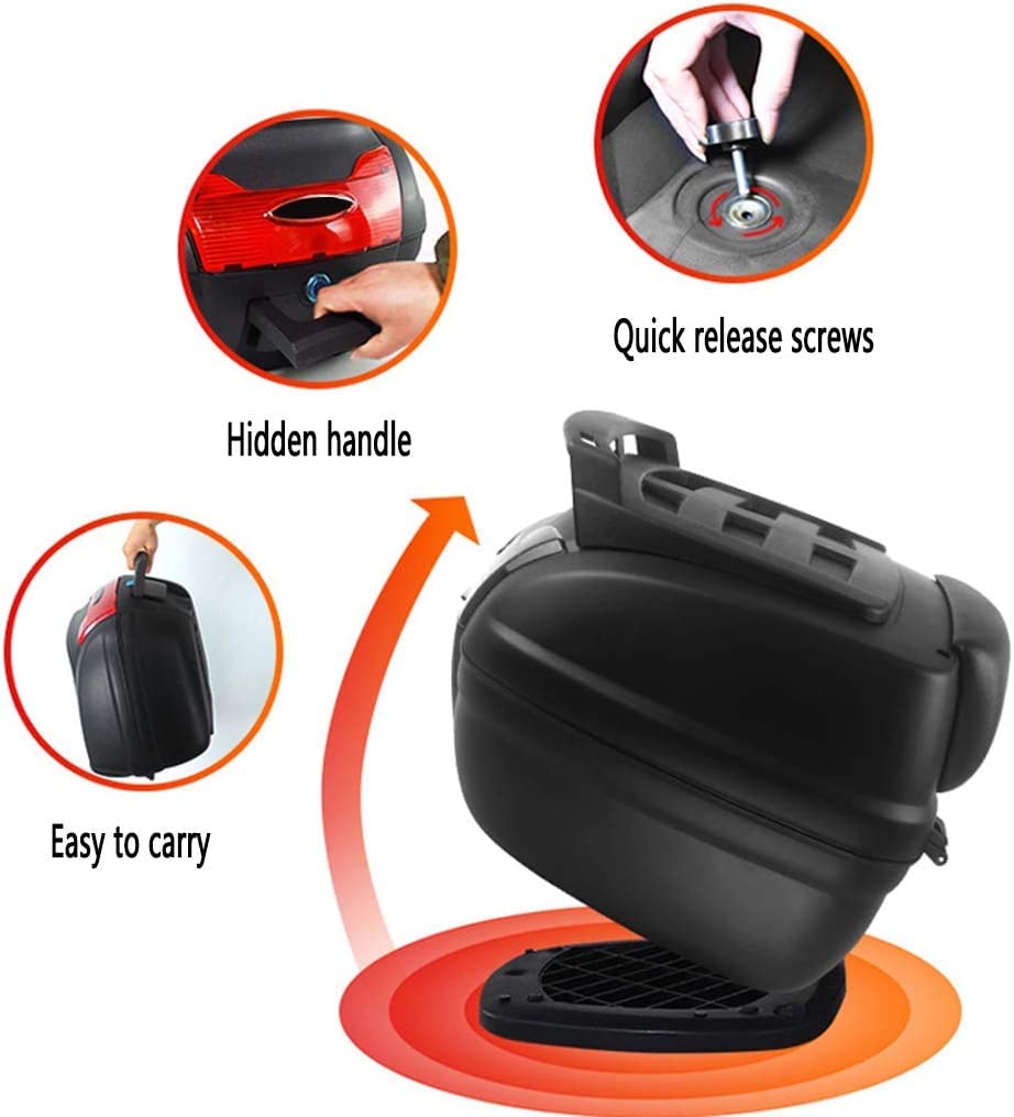 ★ Large and Spacious:Top box has enough room to fit in your helmet and other items. REAR REFLECTOR: Keeps you visible on the road at night.