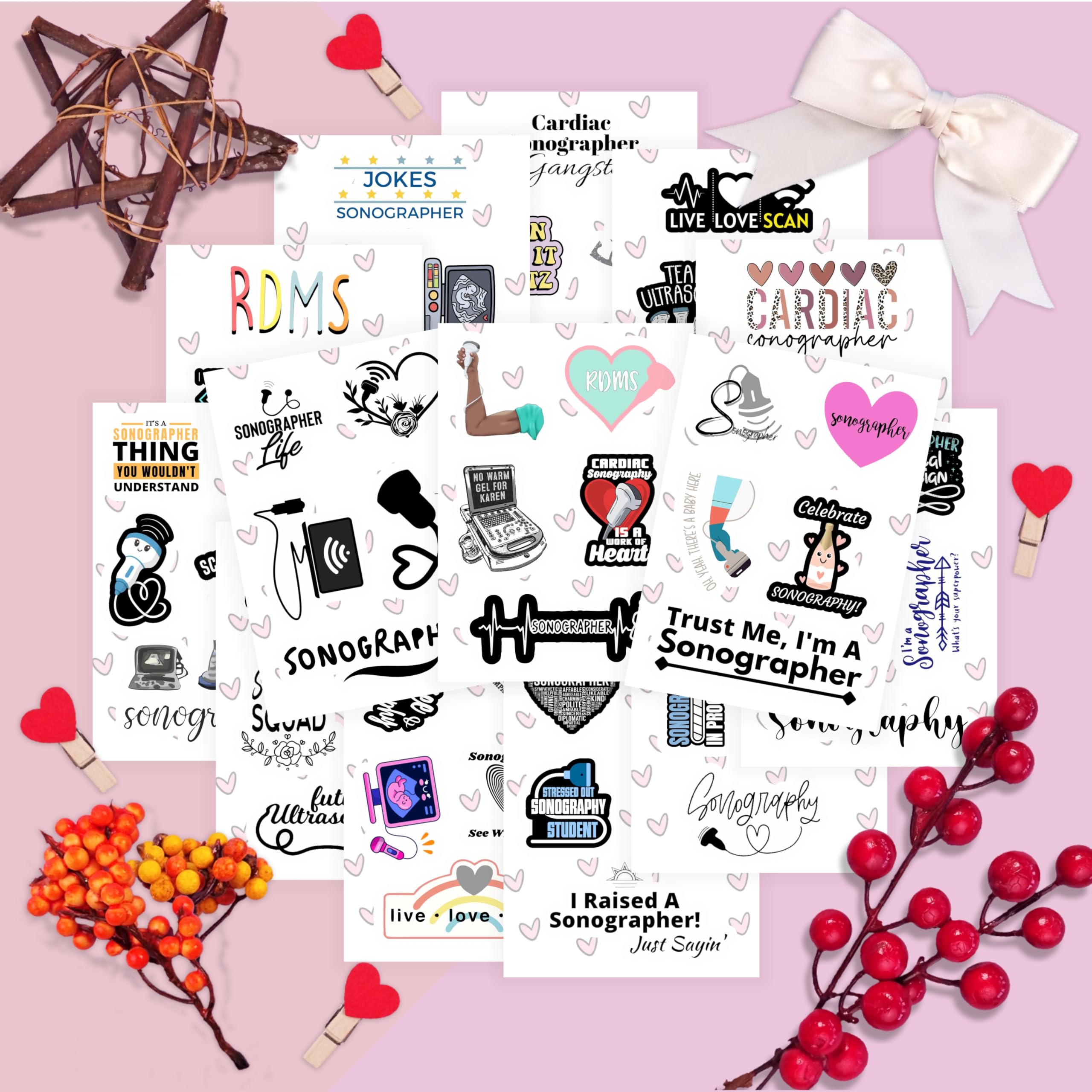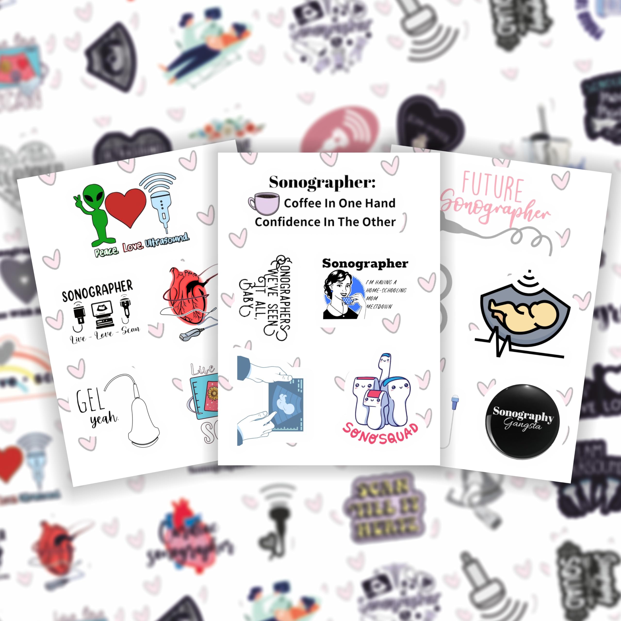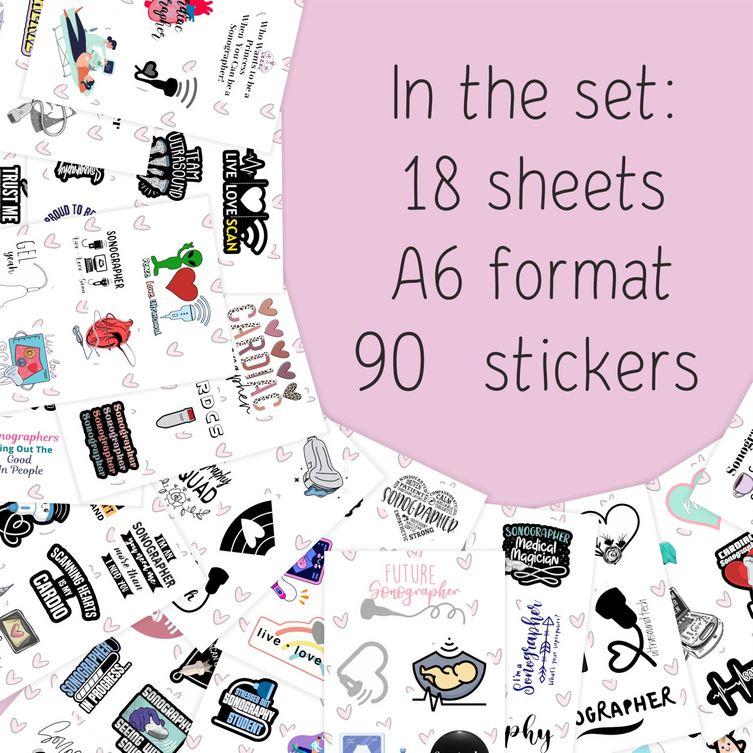 STICKER SHEETS - Sonography sticker pack contains several sheets. Sticker sheets are less likely to get damaged or bent compared to loose, cut-out stickers.