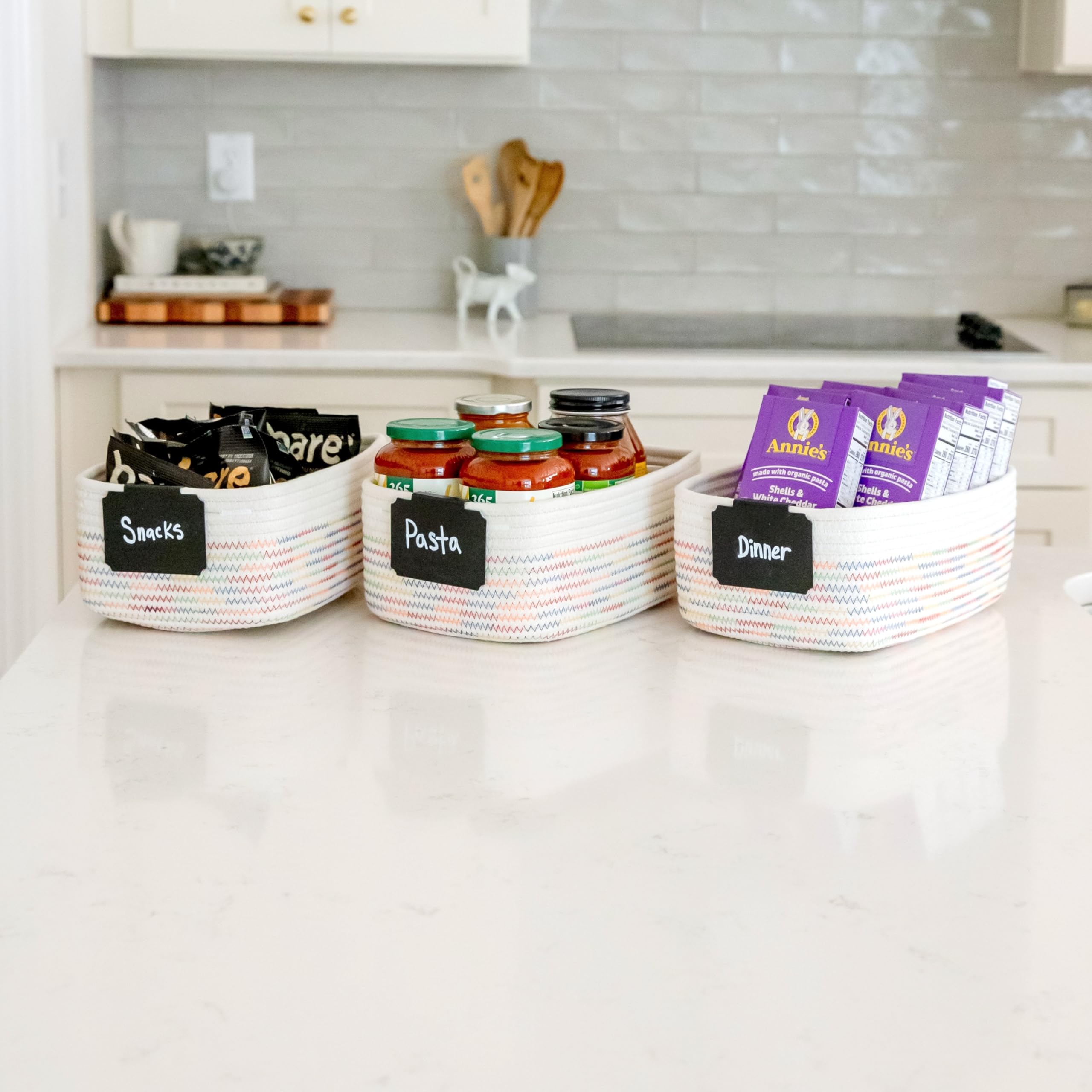 Safe, Natural Cotton Organizer Bins: Crafted from the highest quality material in the market, our storage bins are oh-so-sturdy (and cute) and ready to take on little humans. They’re 100% safe, so you can rest easy if teething toddlers take a nibble. Reinforced Hidden Handles: Now you see ‘em, now you don’t! With completely hidden handles that blend seamlessly into the rope basket, you’ll be the Houdini of home organizing. They’re even double-stitched and reinforced for extra heavy loads!