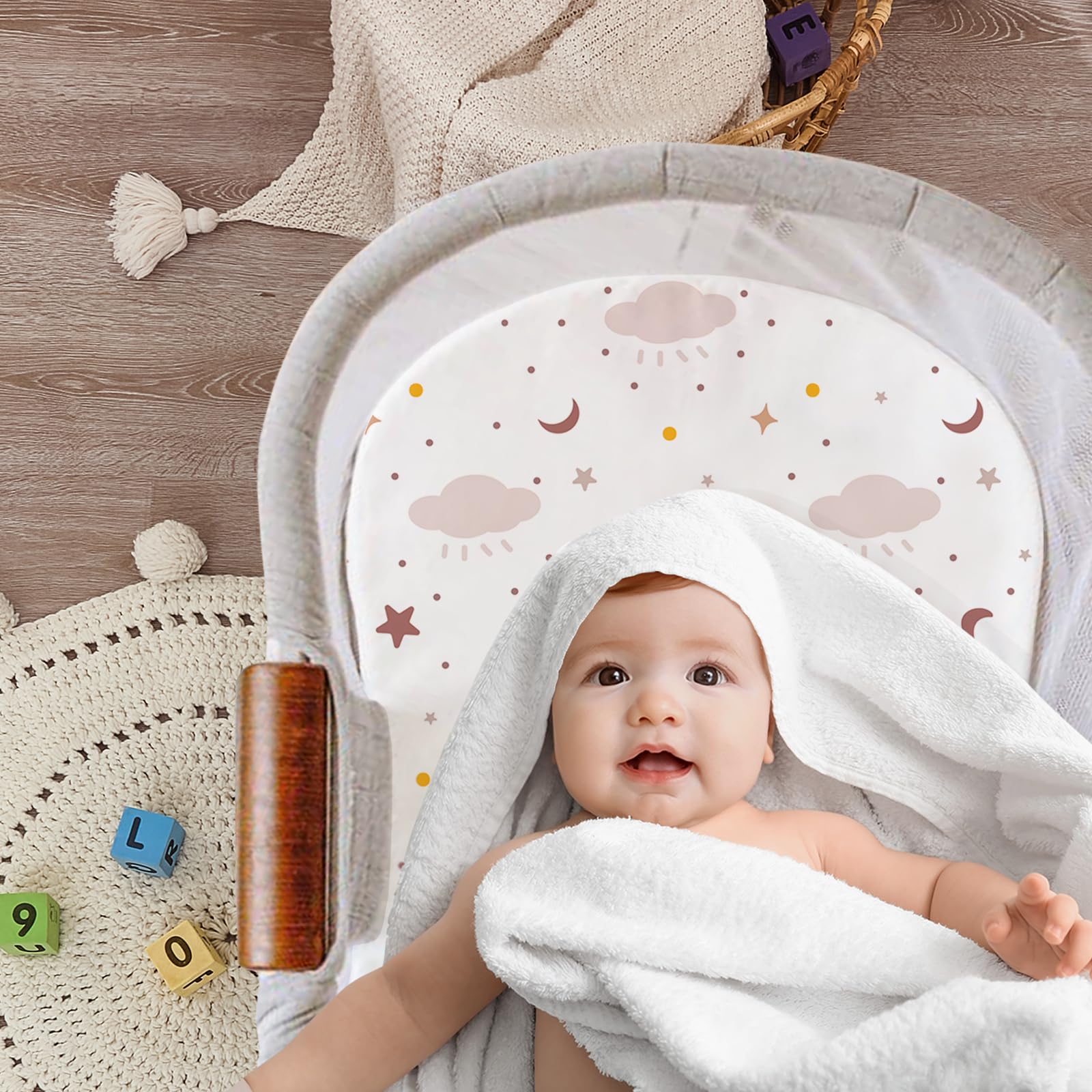 PREMIUM FABRIC - Our bassinet sheets are made of premium brushed polyester fiber with excellent breathability and natural elasticity. The soft and smooth touch of the bassinet fitted sheet surface creates a gentle and cozy sleeping environment for your little one