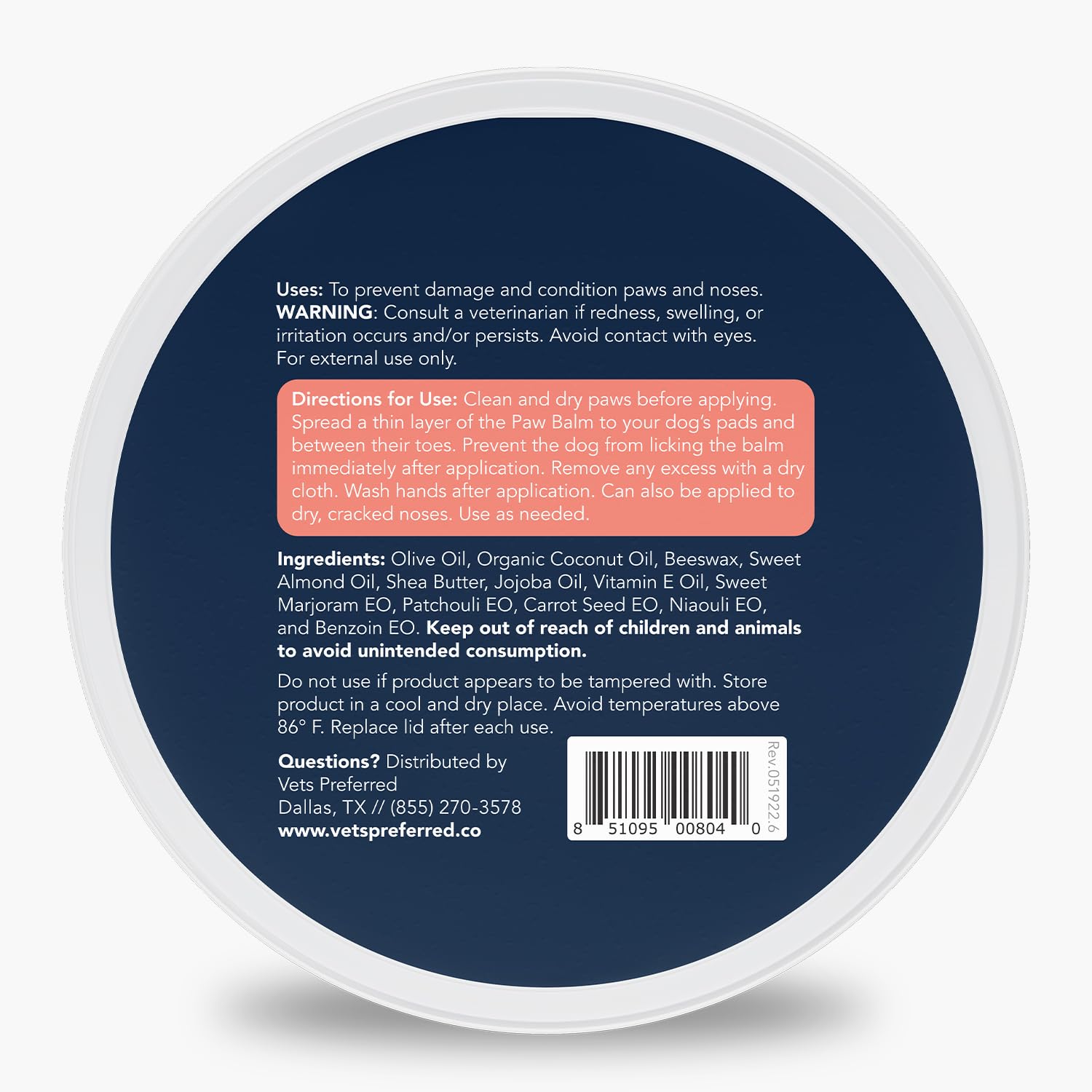 PROTECTS PAW PADS & NOSE – Vets Preferred Paw Balm creates a protective barrier to shield your dog’s paws from hot pavement, ice, salt, and rough surfaces while soothing dry, cracked noses and pads.