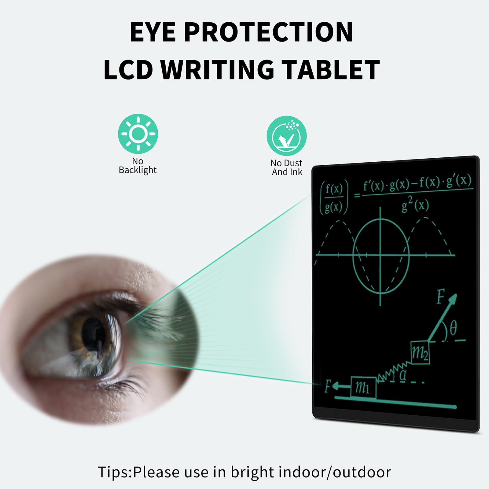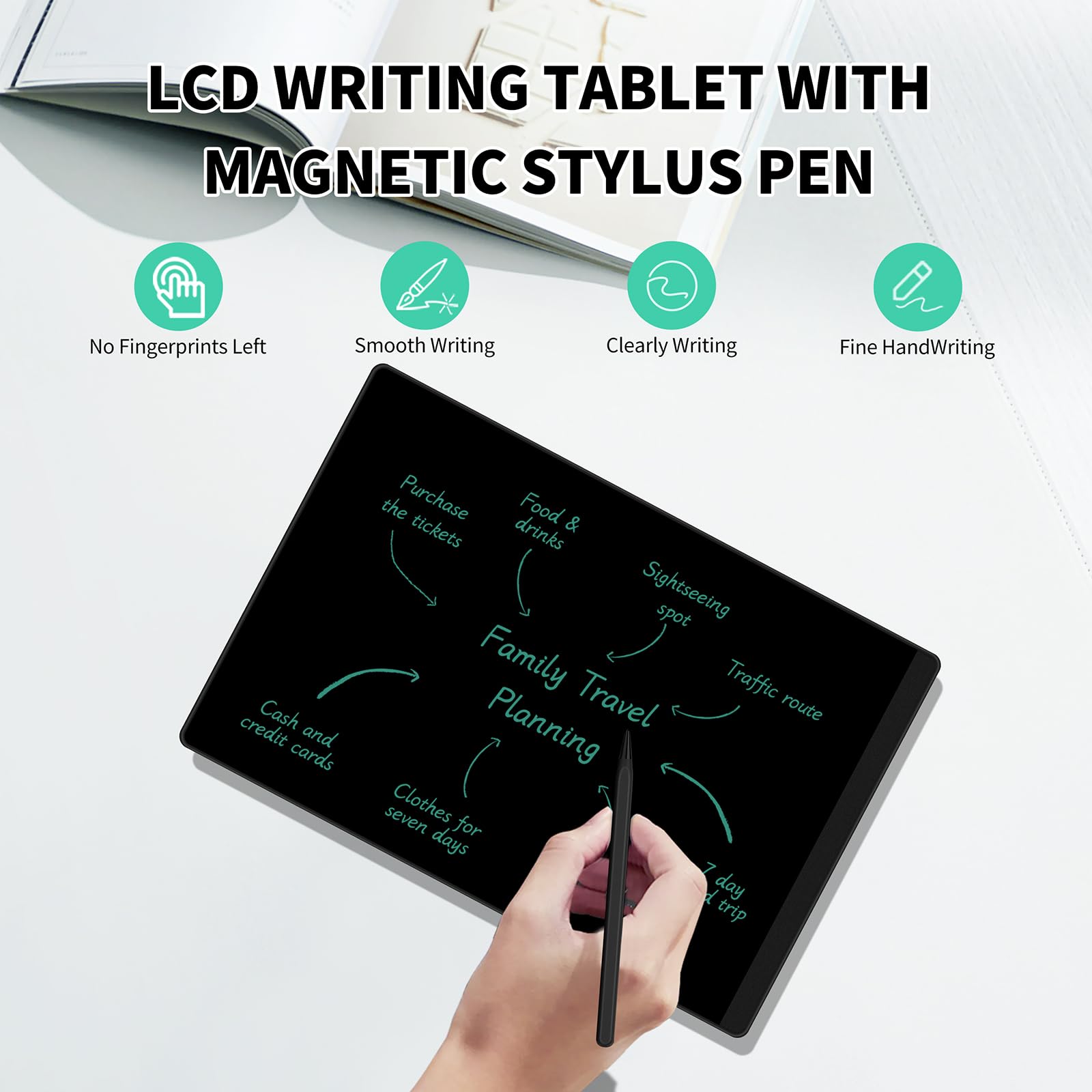 Eye Protection: The drawing pad features LCD pressure sensitive technology, no blue light and no radiation; It's safe and comfortable for both kids and adults to use for a long time; The writing tablet comes with a magnetic pen that can create a blue-green color handwriting lines, which are clear and eye-catching; Unlike others, there's no fingerprints or press mark left on the screen, giving you a better writing experience