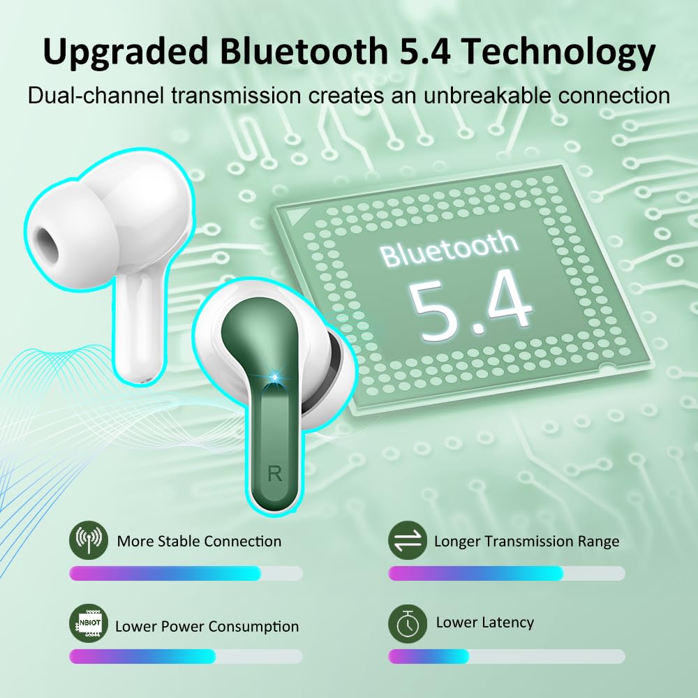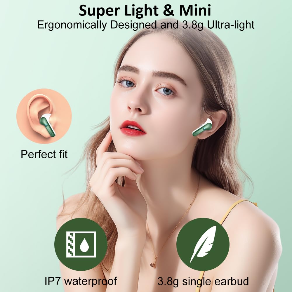Dual LED Power Display and Upgraded 40H Playback: Dual LED power display on the case can help check the charging status of wireless headphones and charging case. Earbud wireless bluetooth can get 8 hours play back from a single charge. Lightweight charging case supports 4 times of recharging for wireless earphones, gives up to 40 hours continuous music time. The Type-C charging port can provide faster and safer charging. Take it to travel with you, you can enjoy long-lasting music every day.