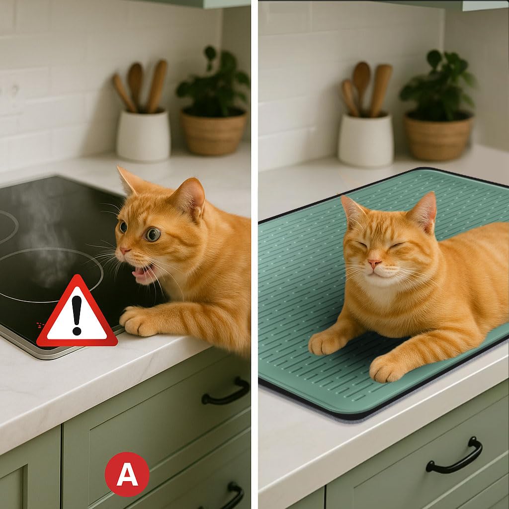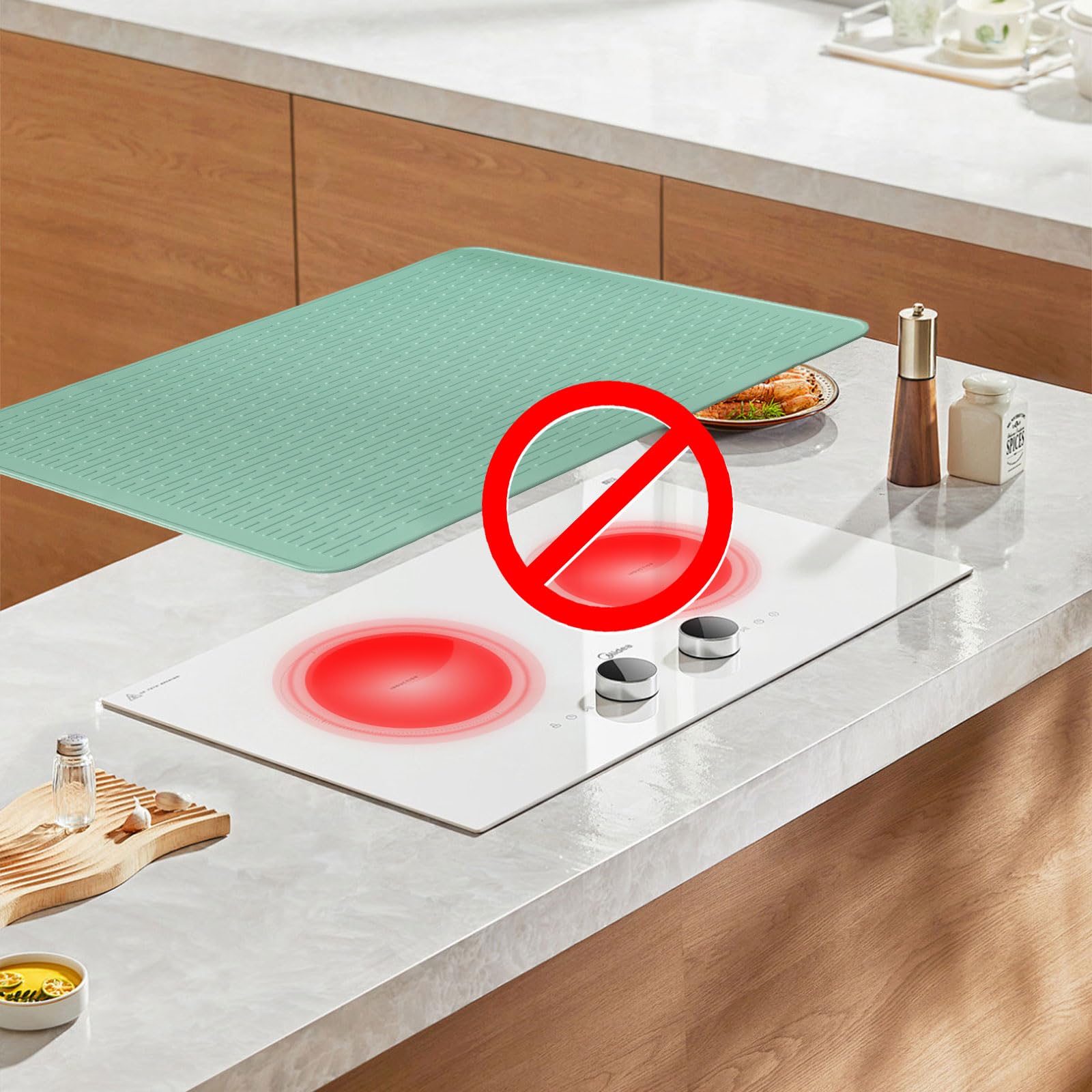Anti Scalding Silicone Mat: Our glass-top stove cover doubles as a silicone trivet mat that can hold hot pots and pans. Heat resistant up to 400°F, its raised wide ridges separate the hot pot from the table and protect your kitchen surfaces from scalding. Attention!*Do NOT put the electric cooktop cover on the electric range while it's ON to prevent damage.