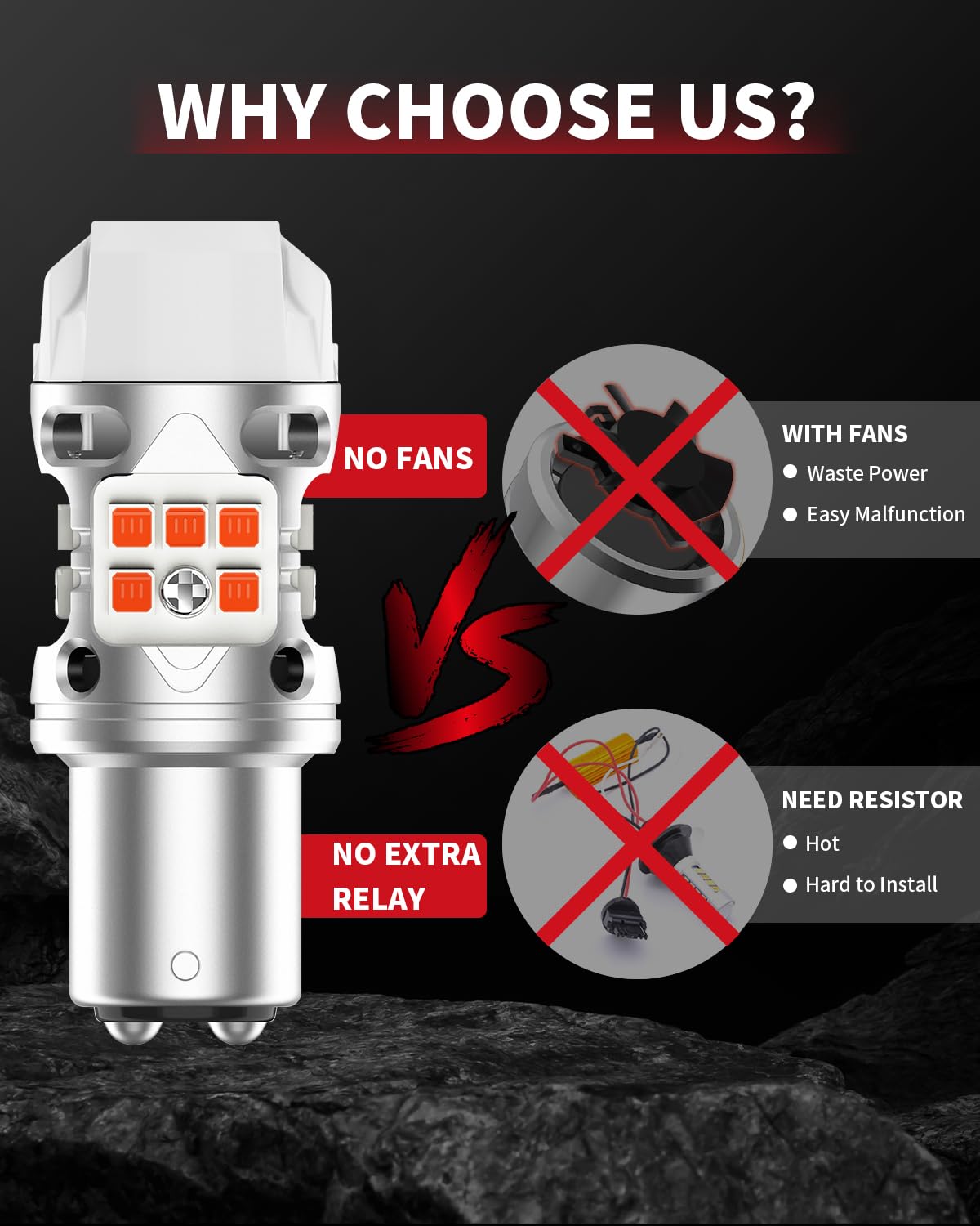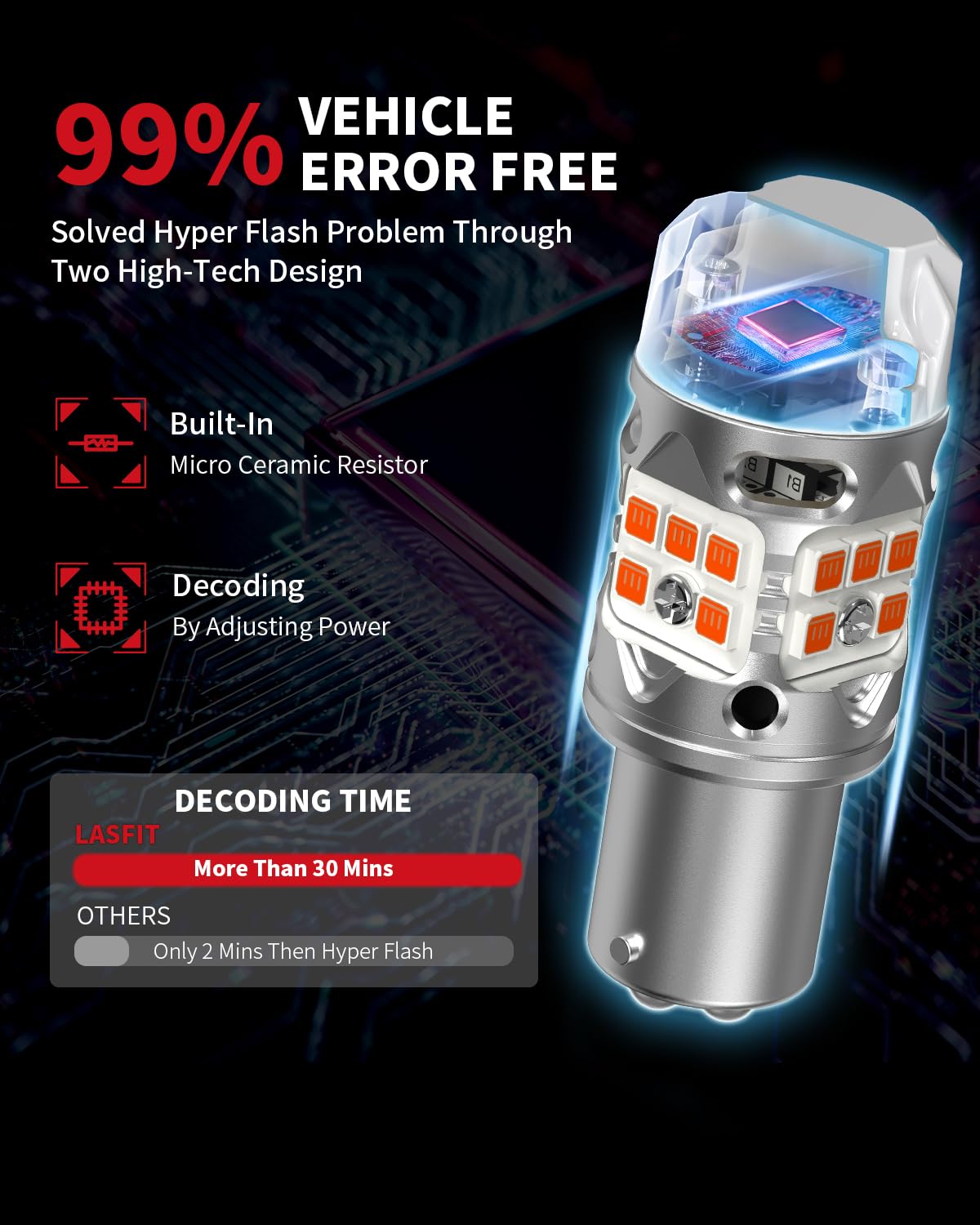 99% CANBUS ERROR FREE — Stable Even in Freezing Winter Starts: LASFIT 1157 amber turn-signal bulbs are engineered to work seamlessly with 99% of vehicle computer systems, thanks to the upgraded built-in resistor. Cold mornings and winter voltage drops often cause hyper flash on many bulbs — but not these. After extensive testing, LASFIT eliminated the need for external resistors, giving your vehicle a truly advanced, winter-ready turn signal solution