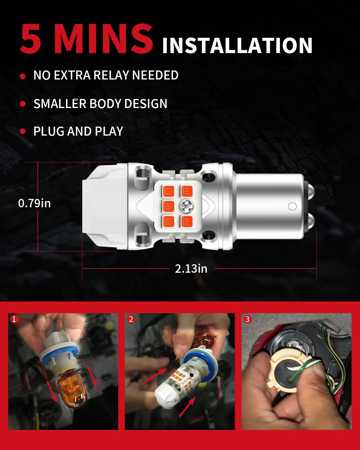 5-MIN PLUG & PLAY — Quick Upgrade Before Holiday Road Trips: Install your bulbs in under 5 minutes, with no modifications and no extra decoder required. Designed 1:1 to match OEM halogen sockets for perfect factory fit. Compatible with 1157 / 2057 / 2357 / 7528 / BAY15D / P21/5W and more. A fast, reliable upgrade right before winter storms, travel, or year-end vehicle checkups
