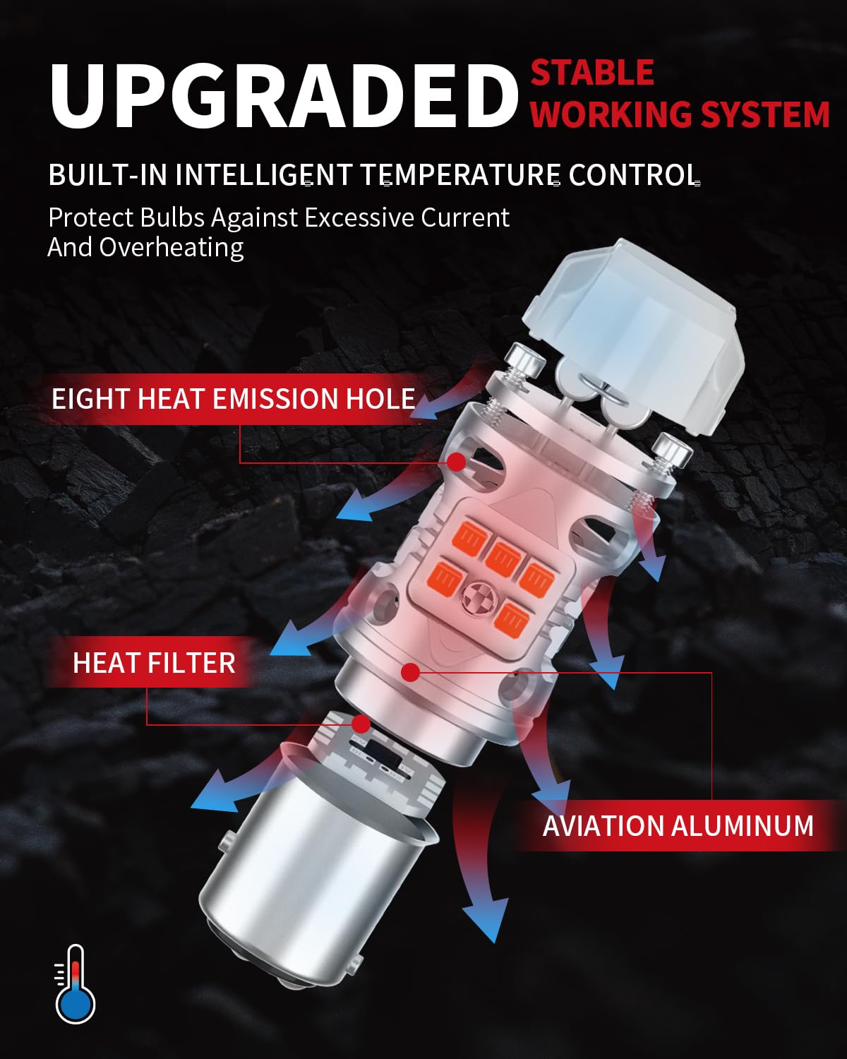 LONG LIFESPAN — Built for Harsh Winter Temperatures & Road Conditions: The Intelligent Temperature Control System (ITCS) ensures consistent performance whether you're driving under scorching summer heat or freezing winter nights. The all-aluminum casing with textured finish, plus internal heat-filter fins, maximizes cooling efficiency. Combined with the Intelligent IC driver and MINI load fuses, these bulbs deliver a 50,000-hour lifespan