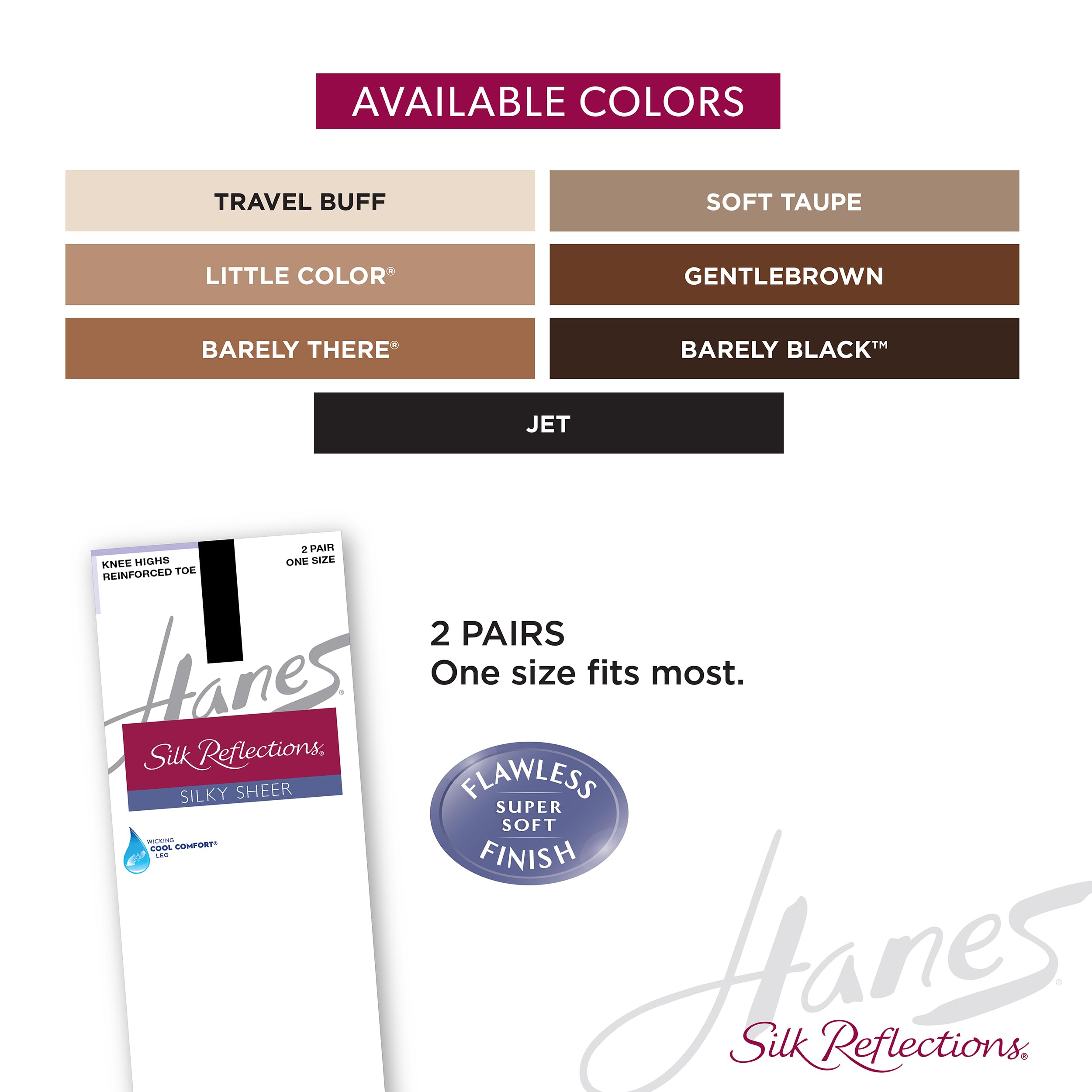 WARDROBE ESSENTIAL: Hanes Silk Reflections classic design make a perfect pairing for skirts, dresses & shorts; Whether you opt for a professional look or a chic ensemble, these knee-highs provide the perfect foundation to enhance your overall outfit.
