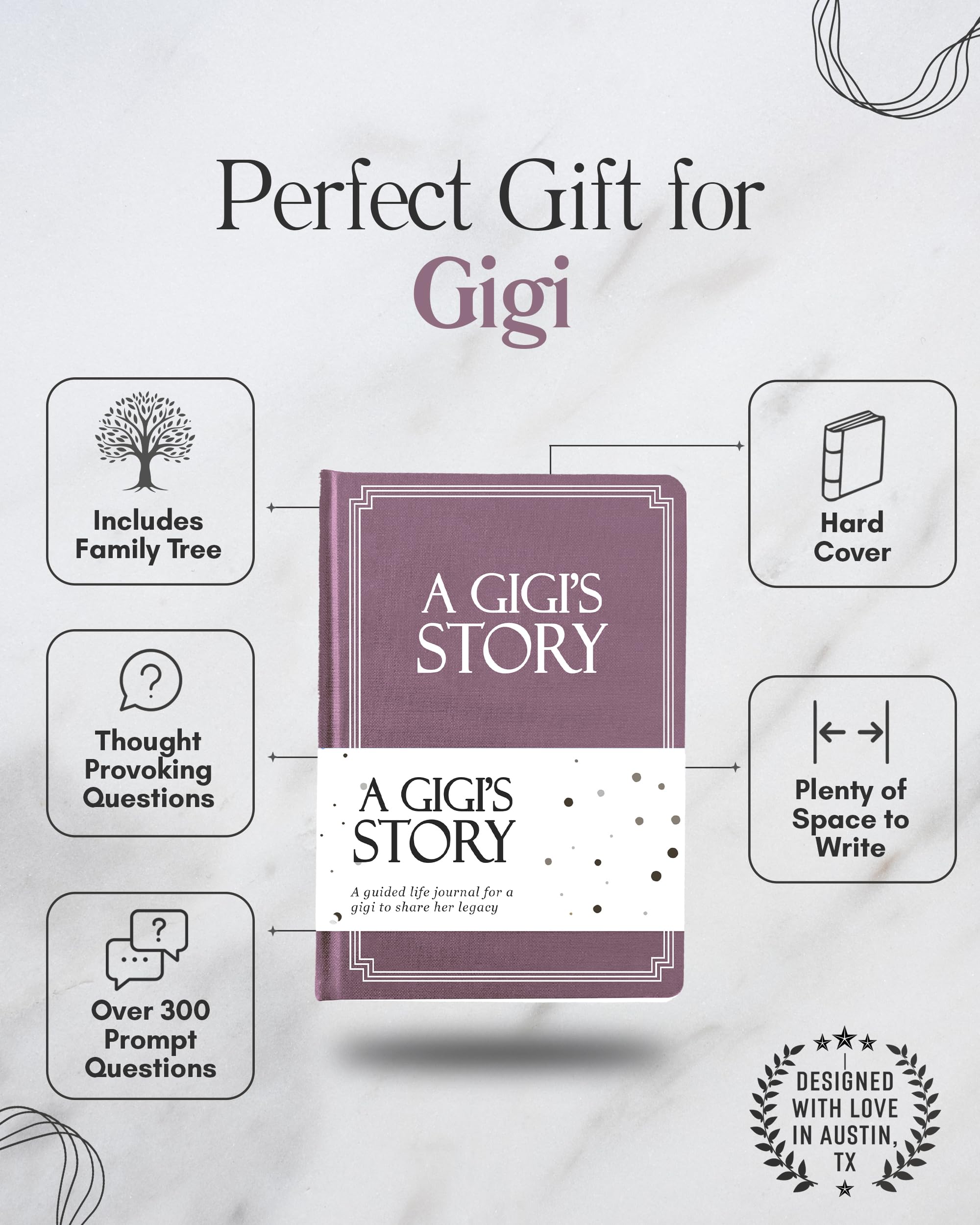 Our guided legacy journal with prompts is a perfect gift idea for a gigi. There are more than 250 fun questions to fill out, carefully designed to help a gigi share her memories and tell her life story in her own way.