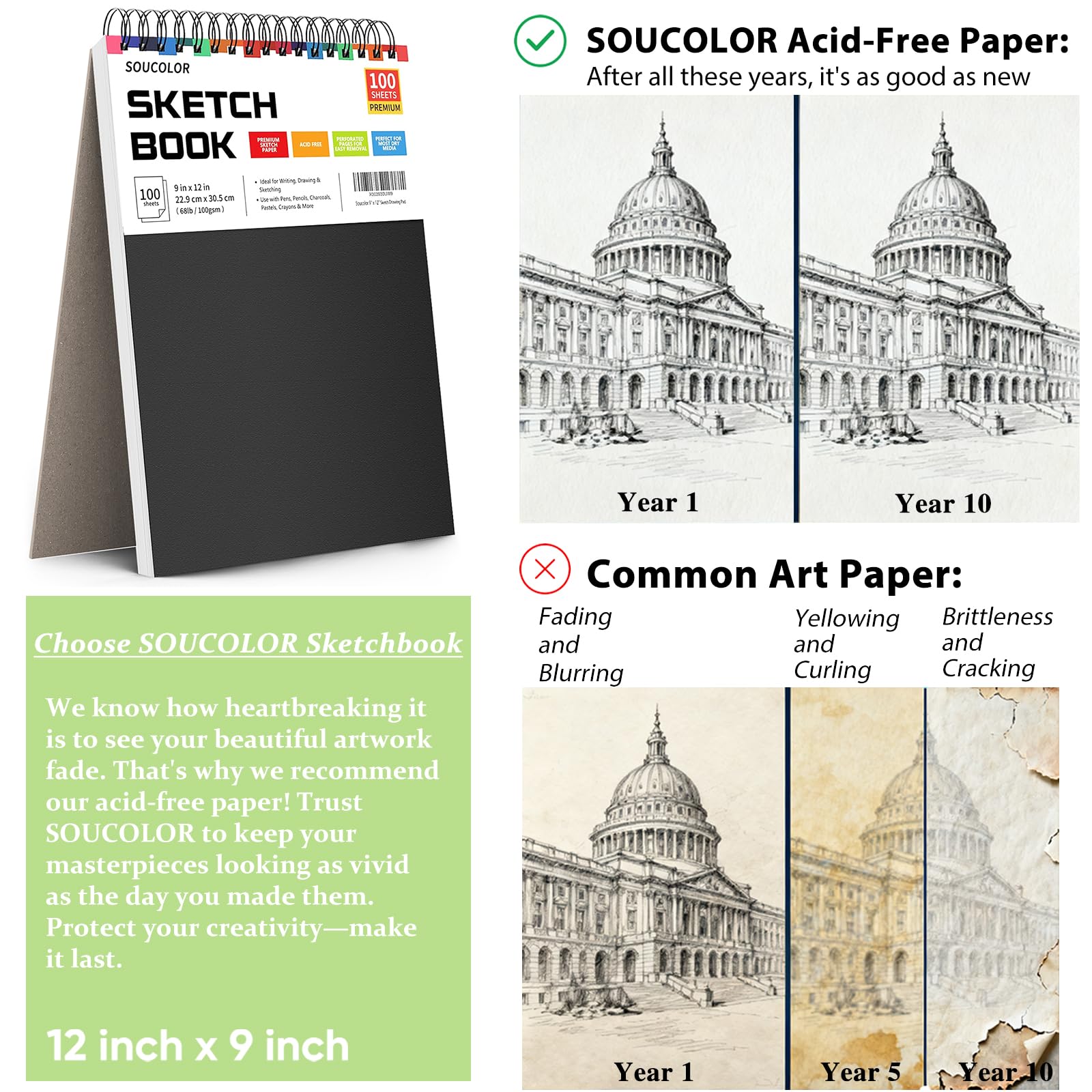 Premium Artist Drawing Paper: Premium drawing pads and sketchbooks with a 9 x 12-inch size are ideal for artists of all skill levels. Each sketchpad contains 100 sheets, for a total of 100 high-quality paper sheets. Good texture for sketching and drawing. A lovely paper book gift for anyone who likes to write, paint, illustrate, sketch, or create art. Graphite pencils, colored pencils, charcoal, pens, soft oil pastels, sketching sticks, and more can all be used with this sketchbook