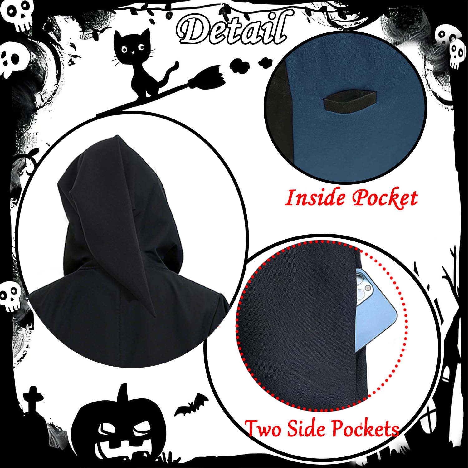 ★Design:-- Designed with the four style robe, Simple and stylish. Perfect for any witch, sorceress, gothic, vampire or any halloween/Christmas themed party or adult fancy dress costume,used for both female and male. Welcome to join and enjoy your funy party.