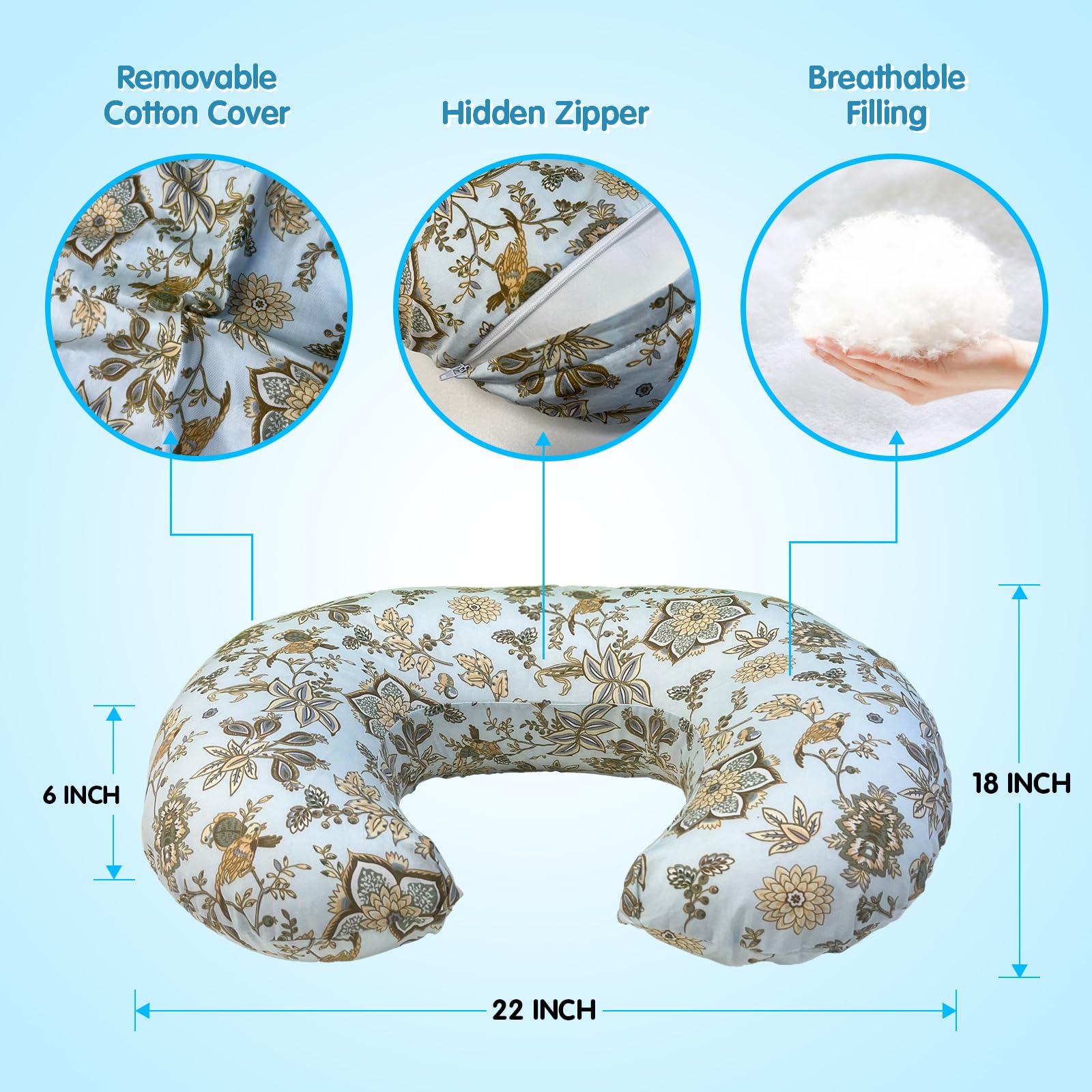 Designed & Recommended by Midwives- This C-Shape nursing pillow for baby includes a removable 100% cotton cover which provides breathability and a gentle surface for your baby's sensitive skin. The baby feeding pillow is stuffed with 3D polyester fiber to ensure adequate air circulation and guarantee optimal elasticity and softness. It's cover is machine-washable & easy to maintain hygiene