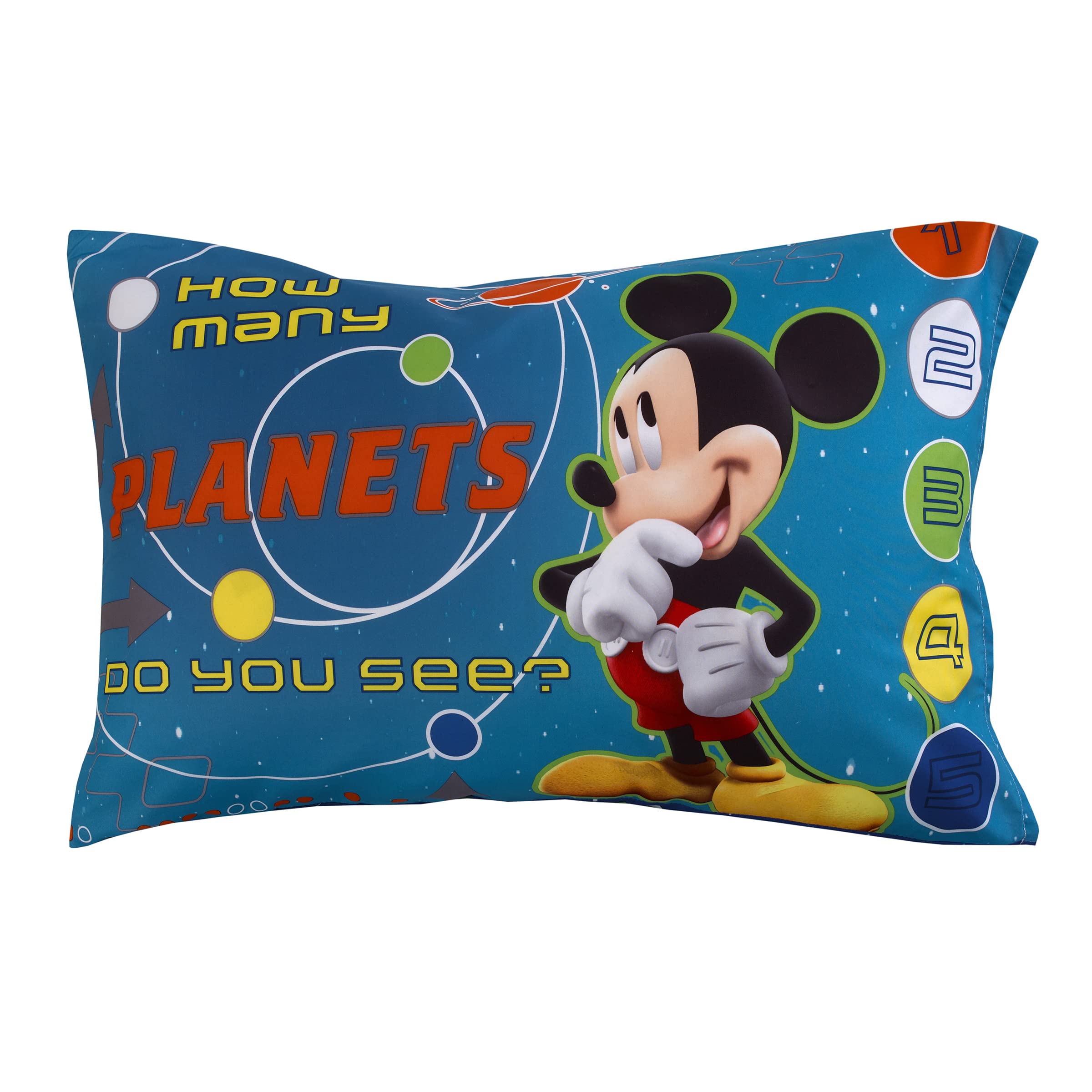 Product Description Lift off with Mickey in this fun space themed toddler bedding set. This out of the world bedding set will surely leave your little one wanting to fly n space with his friend Mickey. Set includes Comforter, standard pillowcase, flat top sheet and fitted bottom sheet. 100% Polyester Microfiber. Machine wash seperately in cold water, gentle cycle. Use only non chlorine bleach when needed. Tumble dry on low heat. Iron on low heat when needed. From the Manufacturer Lift off with Mickey in this fun space themed toddler bedding set. This out of the world bedding set will surely leave your little one wanting to fly n space with his friend Mickey. Set includes Comforter, standard pillowcase, flat top sheet and fitted bottom sheet. 100% Polyester Microfiber. Machine wash seperately in cold water, gentle cycle. Use only non-chlorine bleach when needed. Tumble dry on low heat. Iron on low heat when needed.