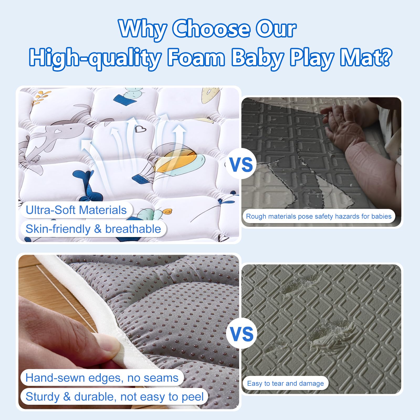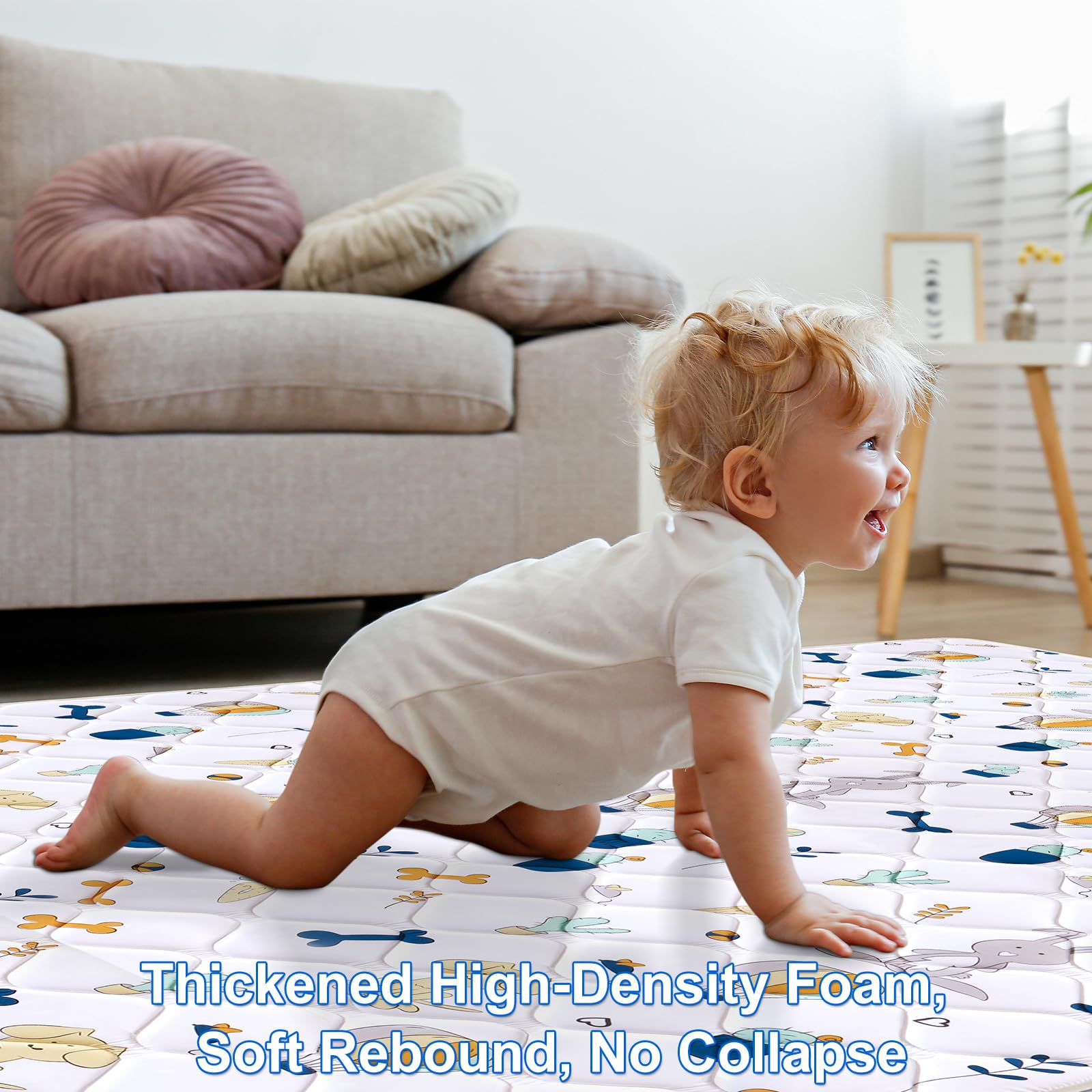 Safety and Non-slip: The non-slip design on the bottom of the play mat ensures stability and safety during playtime, providing a safe place for your kids to romp around. Our baby mat meets US CPC certification and regulations and passes phthalate, lead, and toxicity tests. So you can trust that our product is safe for your little one