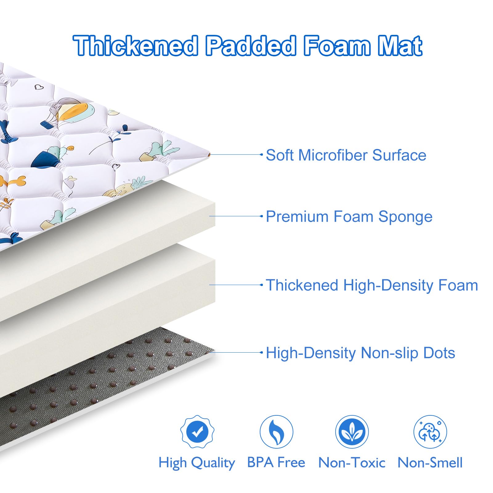 Portable & Versatile Use: Measuring 59x59 inches. It can be used in children's tents of corresponding sizes or a baby play mat for indoor and outdoor use, ideal for any play area at home or in a public place. Besides our play mats for floor is one-piece and can be easily folded for easy to pack to carry or store to save space