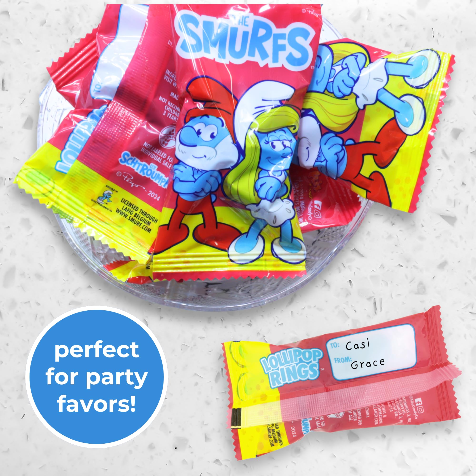 Make any party extra sweet with Smurf Lollipop Rings! This box contains 18 individually wrapped, character-shaped suckers in fruity flavors like orange, strawberry, and blue raspberry. These fun, colorful treats are perfect for party favors, themed birthdays, or just a delightful snack for smurf fans of all ages.