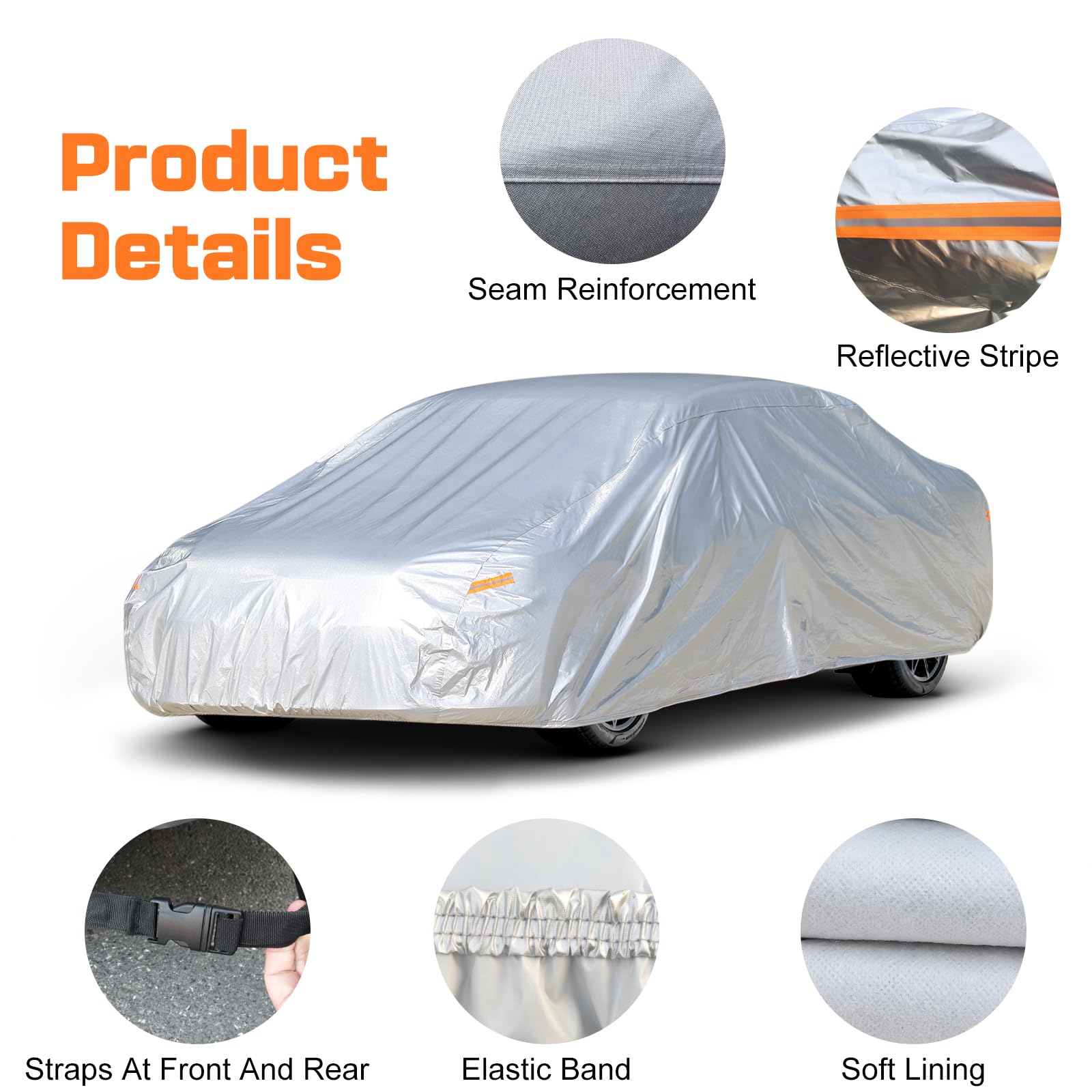 100% Waterproof & Windproof – High-density fabric with a waterproof coating and secure straps keeps your car dry and protected even in storms.
