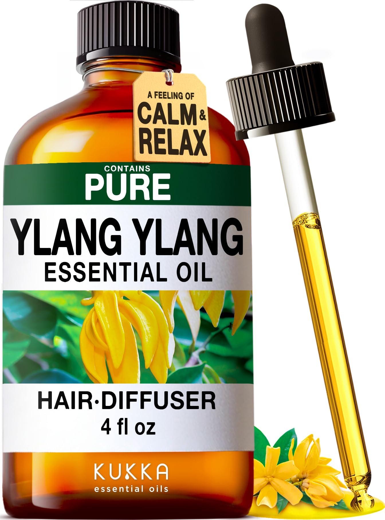 Kukka Ylang-ylang essential oils for diffuser. Our ylang-ylang oil evokes a sweet, floral scent that infuses a soothing and calming aroma to surroundings. Add 4-5 drops of ylang-ylang essential oil into a diffuser 30 minutes before bed.