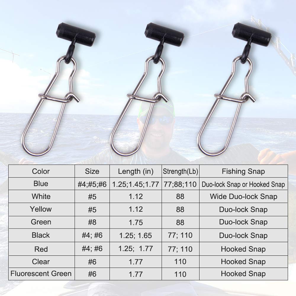 Strong. Hooked snap made from stainless steel with nickle plated. On-piece built enhanced version ABS sinker slides