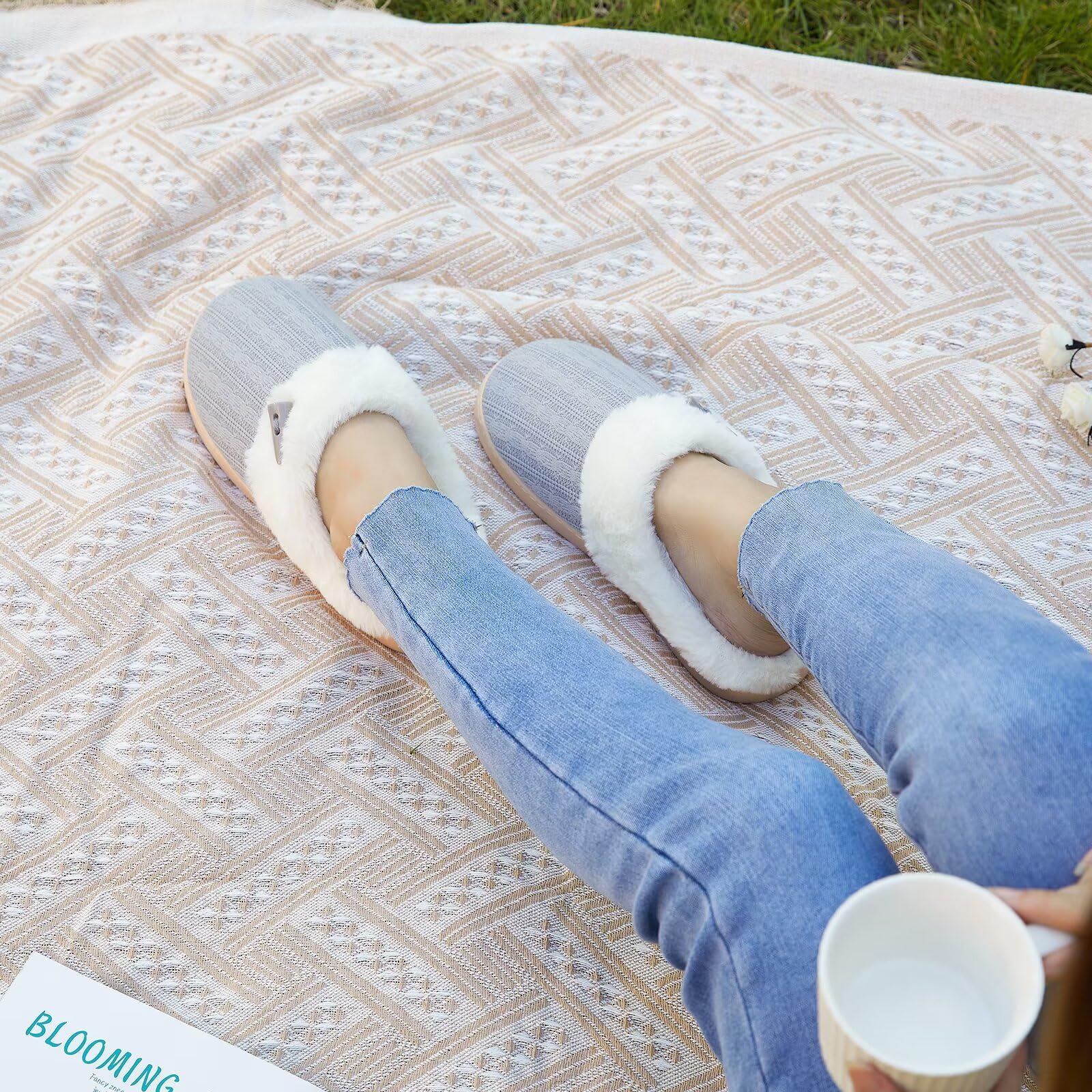 INDOOR & OUTDOOR USE:The textured bottom grips to the floor,making it perfect for indoor and outdoor family use.Rubber outsole mutes your stepping,makes these house slippers as a smart choice for bedroom use