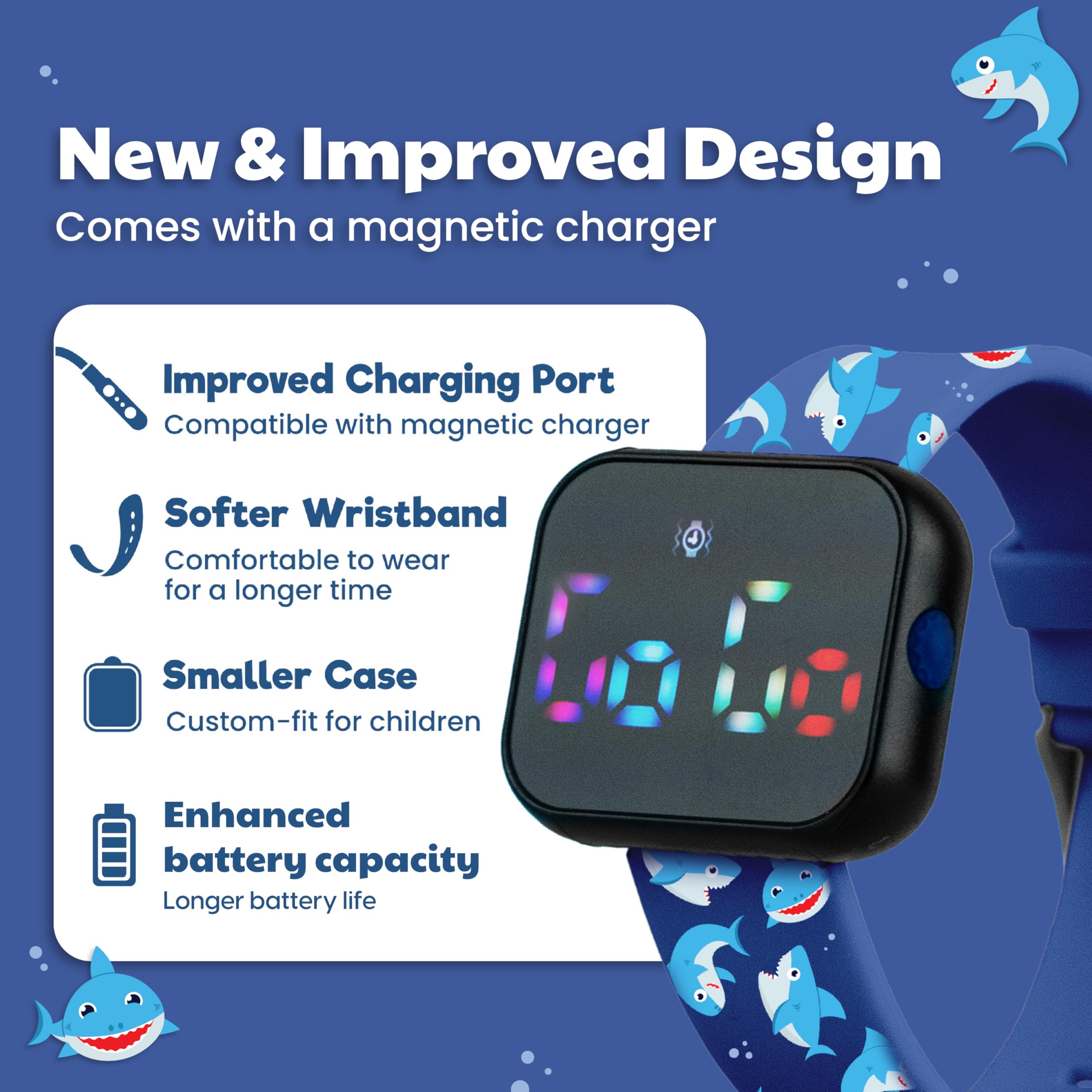 IMPROVED WATER-RESISTANT AND BATTERY LIFE - No need to remove the watch every time your kids go to the bathroom! They can wash their hands or play with water without fear of damaging the watch. Upgraded V2 watch model only needs charging about once a week.