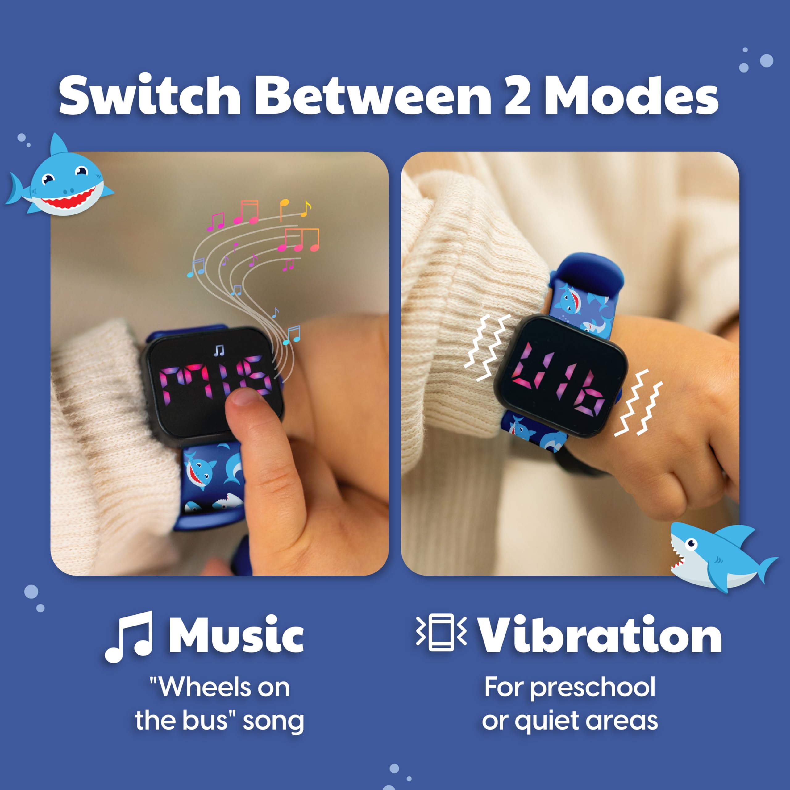 POTTY TRAIN YOUR KIDS EASILY WITH A FUN MELODY ALARM - the watch is programmable to play the tune "Wheels on the Bus" to remind your kid to go do their toilet business every 30, 60, 90 mins or 2 hours, and automatically recurs. The watch can switch from music to vibration if needed for school or quiet areas.