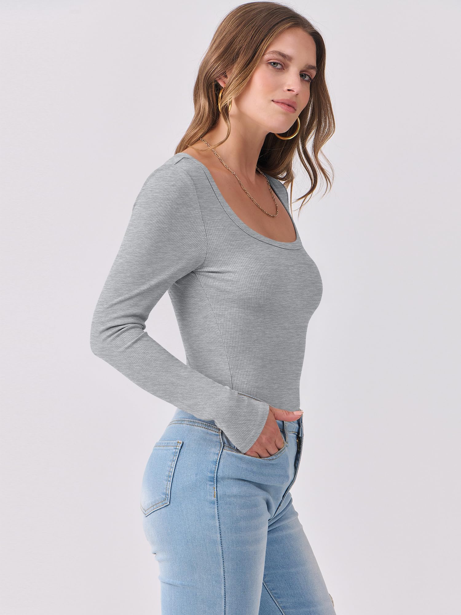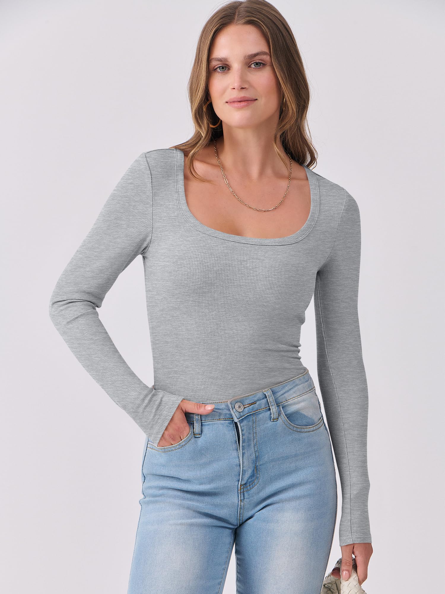 Features - Women's long sleeve shirts, scoop neck, ribbed knit, casual sytle. This women's basic top perfect for daily wear, work, gonging out, vacation.