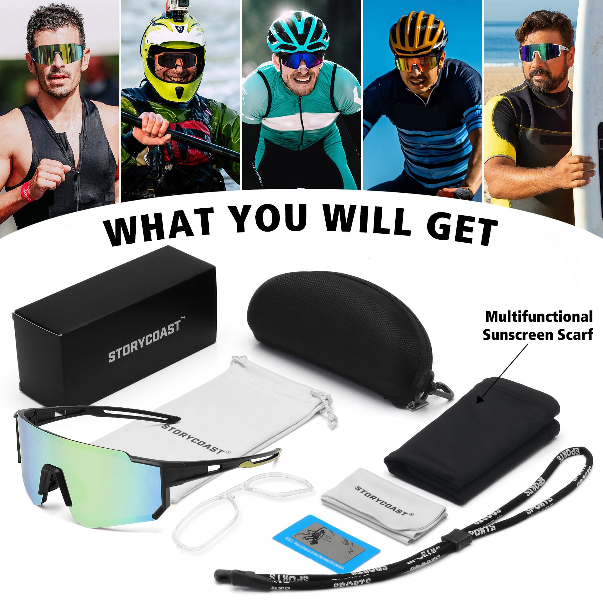 STORYCOAST FRAME TECHNOLOGY- the frame is lightweight, very flexible, heat-resistant and UV-resistant. The sturdy and lightweight frame with non-slip nose pads and improves wearing comfort. Suitable for all face shapes, suitable for all kinds of outdoor sports.