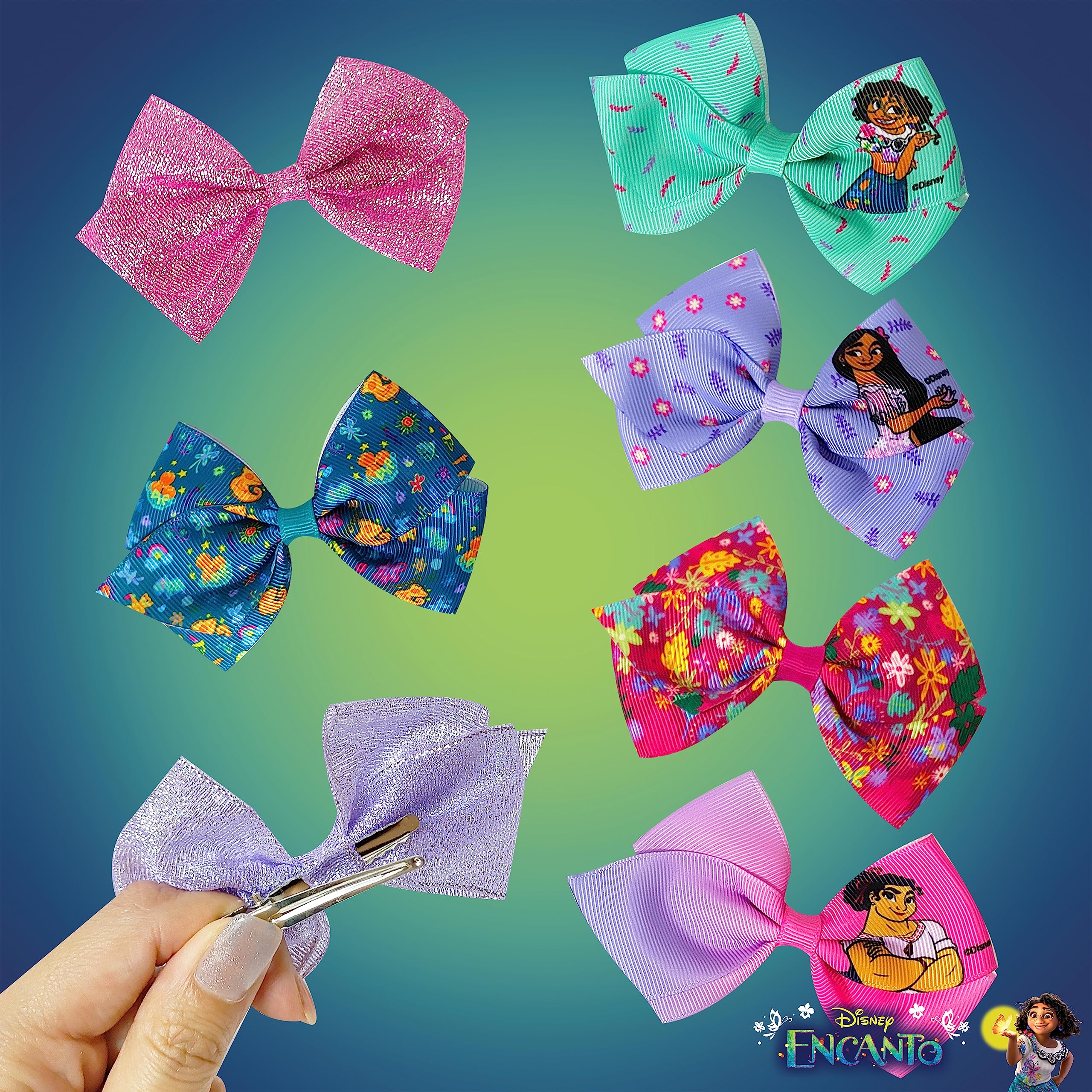 Luv Her in an Exclusive collaboration with H.E.R. Accessories creates costume online friendly products under their licensed approved manufacturers to ensure that the children's accessories are made with non-toxic materials, non-child labor, and approved design to ensure it hold licensees quality standards. >>>>>> Disney Encanto Bow Bundle 7 Pcs 4 Inch Bundle - Hair Bows for girls - Different Encanto Image on each clip - Alligator Clip - Ages 3+ Hair Accessories Bows for Girls