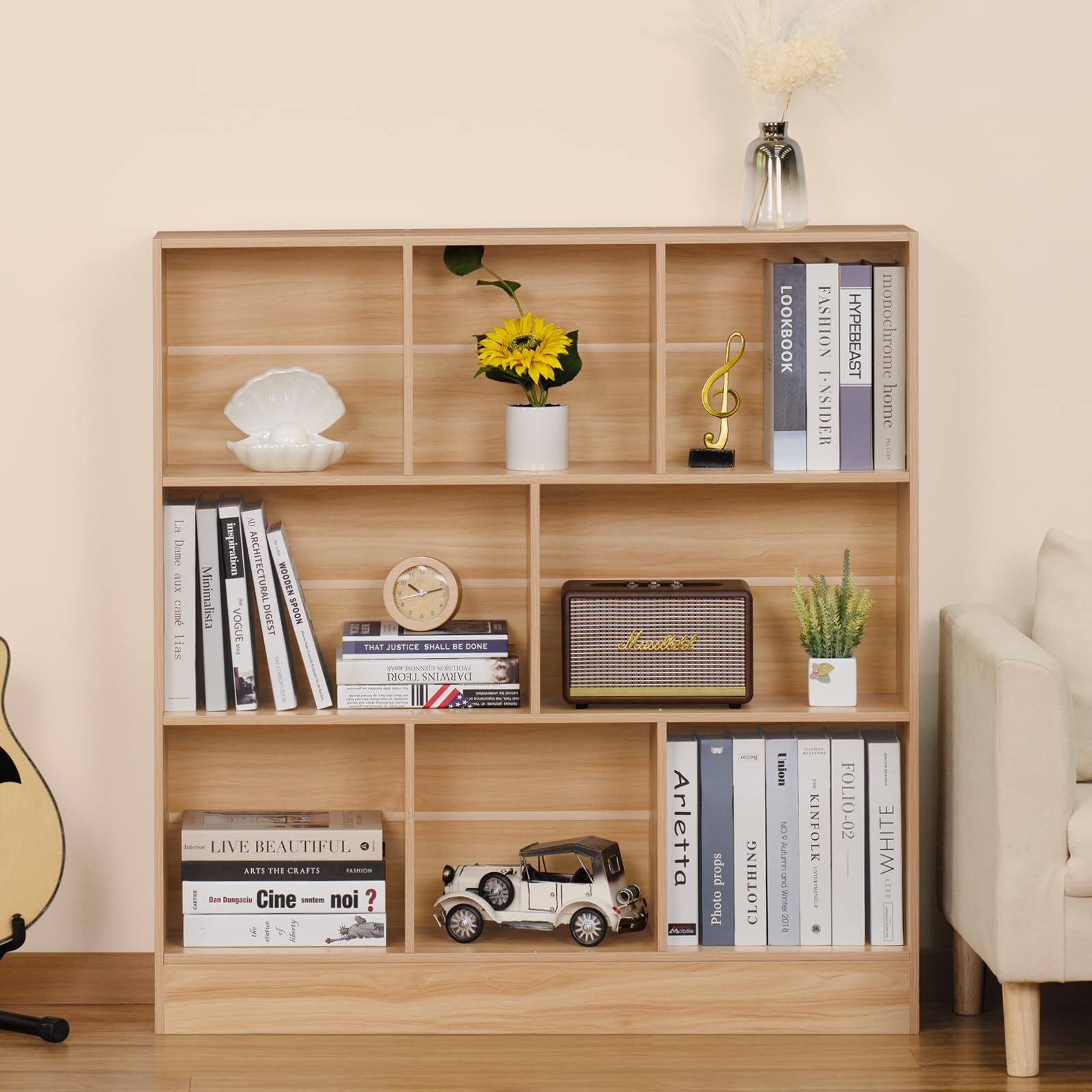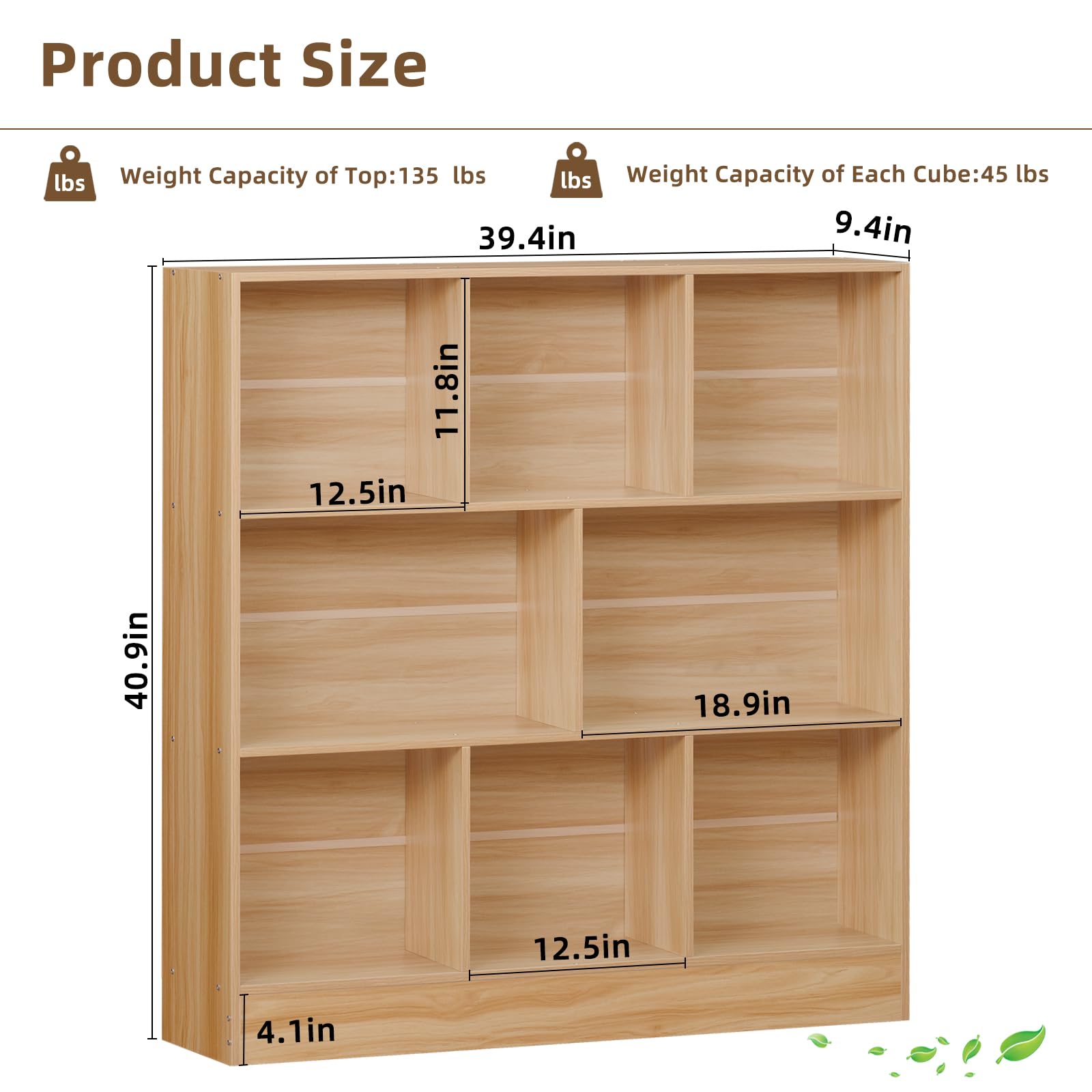 【Sturdy Structure & Elevated Base】The design of the bedroom bookshelf makes its structure more stable and less prone to deformation, which allows it to accompany you for years. The elevated 4.13in" base can keep your books away from dust and dampness, which also makes it easier for cleaning. Each open cube of the natural bookshelf can hold up to 45 pounds. Size:39.4''L x 9.4''W x 40.9''H.