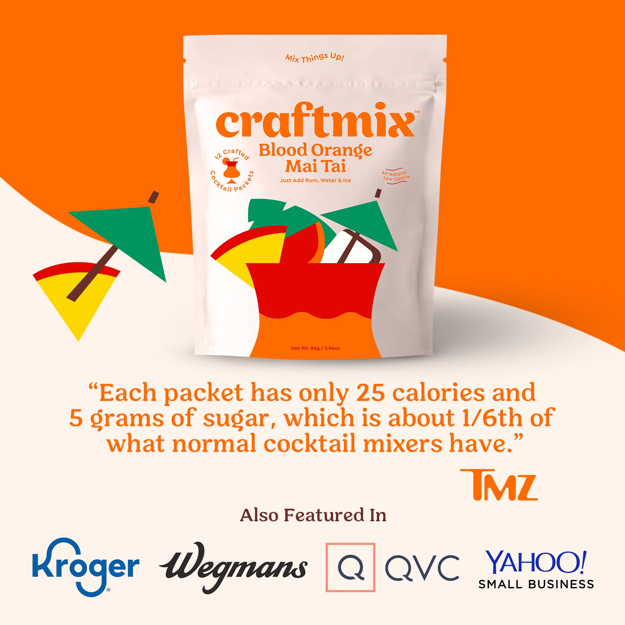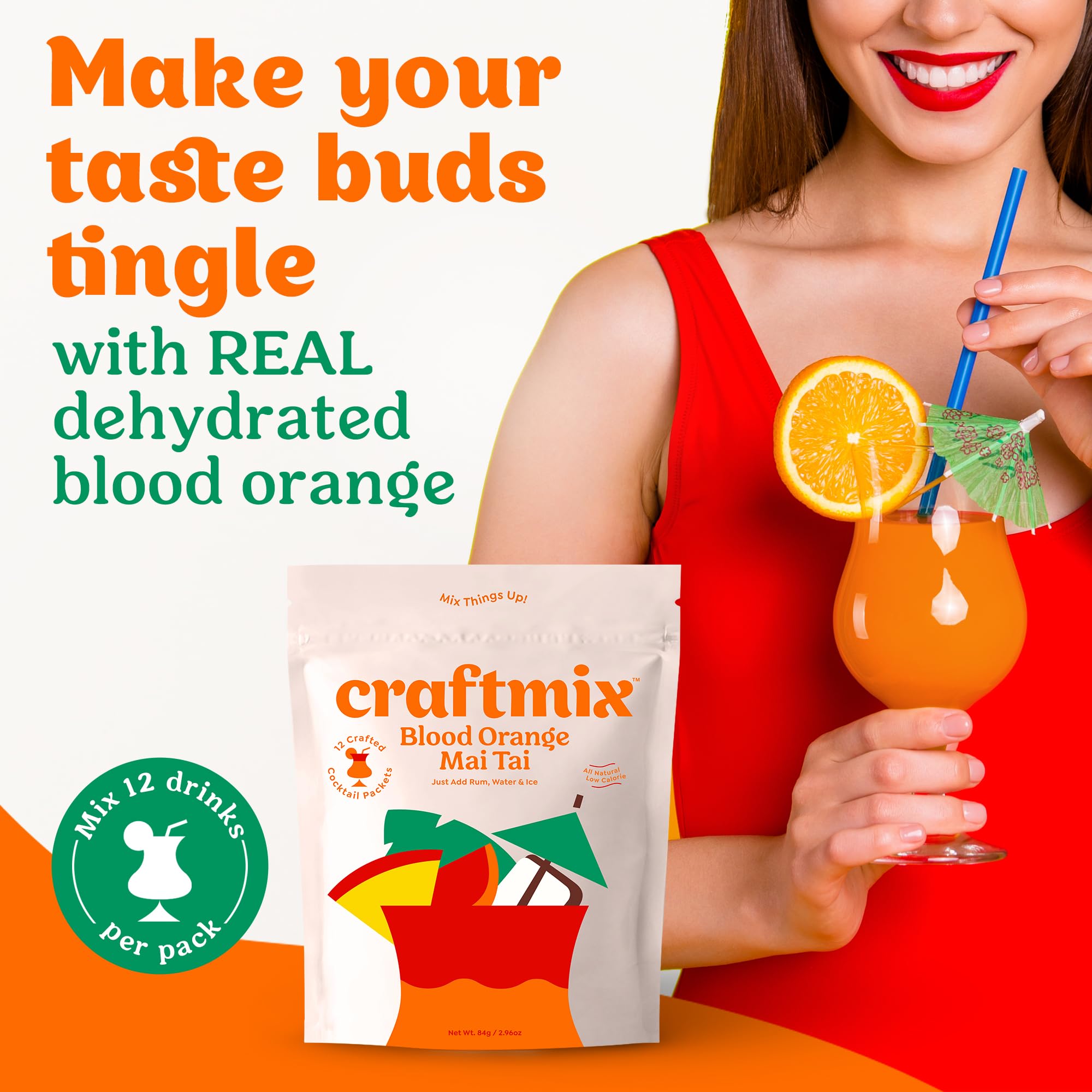 Blood Orange Mai Tai Cocktail Mixer: With Craftmix just add rum, sparkling or still water, and ice to savor the tropical fruity taste of this fat free, low calorie alcohol drink mixer made with natural ingredients in 60 seconds or less anytime, anywhere. Pack makes 12 Drinks.